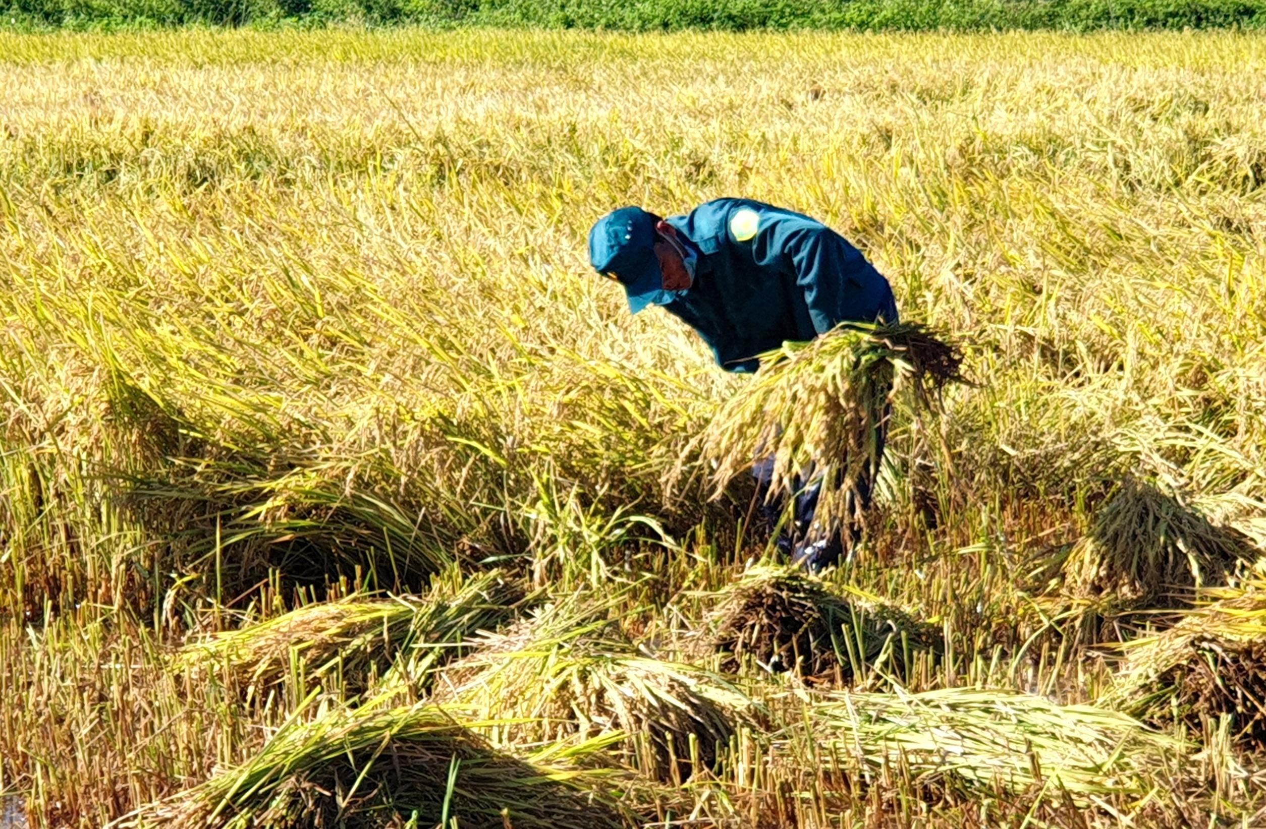 Ông Trần Văn Ánh, Phó Chủ tịch UBND xã Đức Chánh, huyện Mộ Đức, cho biết, các lực lượng ưu tiên gặt trước những diện tích đổ ngã nặng và có nguy cơ mộng thiệt hại nặng và ưu tiên những hộ neo đơn, không có lao động. Những hộ có lao động thì được vận động, huy động ra đồng thu hoạch.