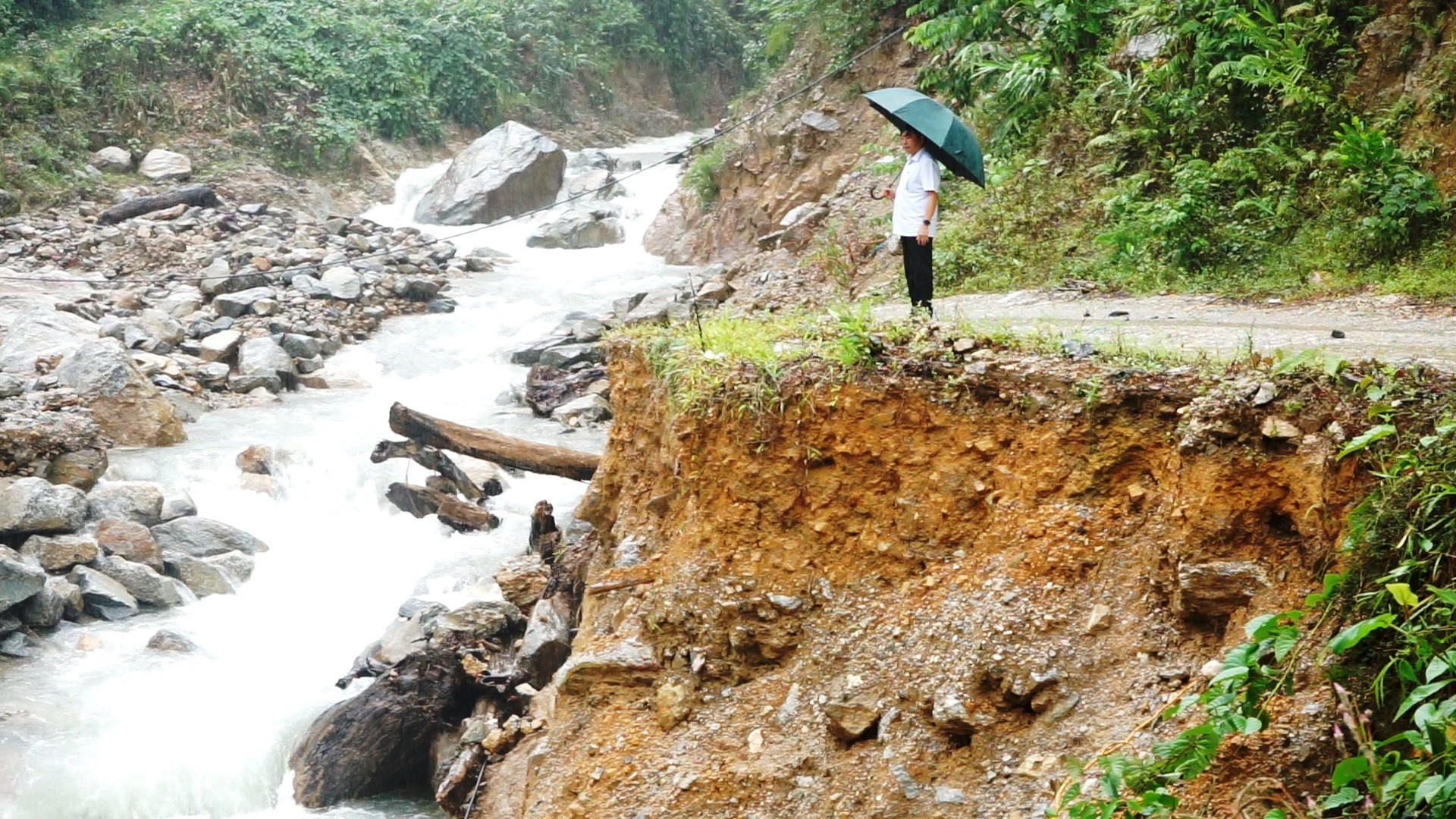 “Hiện chưa tiếp cận được hiện trường nên chính quyền địa phương đã huy động các lực lượng theo phương châm “bốn tại chỗ” để hỗ trợ người dân. Thông tin liên lạc vẫn thông suốt, chưa có thiệt hại về người và tài sản nhưng để đảm bảo an toàn, chúng tôi đang tính toán đề xuất cấp trên tạo điều kiện cho lưu thông từ 1 đến 2 chiếc thuyền để cung cấp thức ăn cho bà con hàng ngày và chở người dân đi khám chữa bệnh. Khi nào tuyến đường khắc phục xong thì dừng lưu thông bằng thuyền”, ông Cường nói.