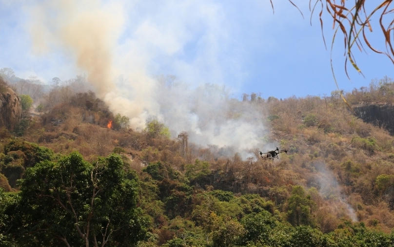 Các lực lượng chung sức cứu rừng đến từ Ban Quản lý rừng, Kiểm Lâm, Quân sự, Công an, chính quyền và người dân địa phương.