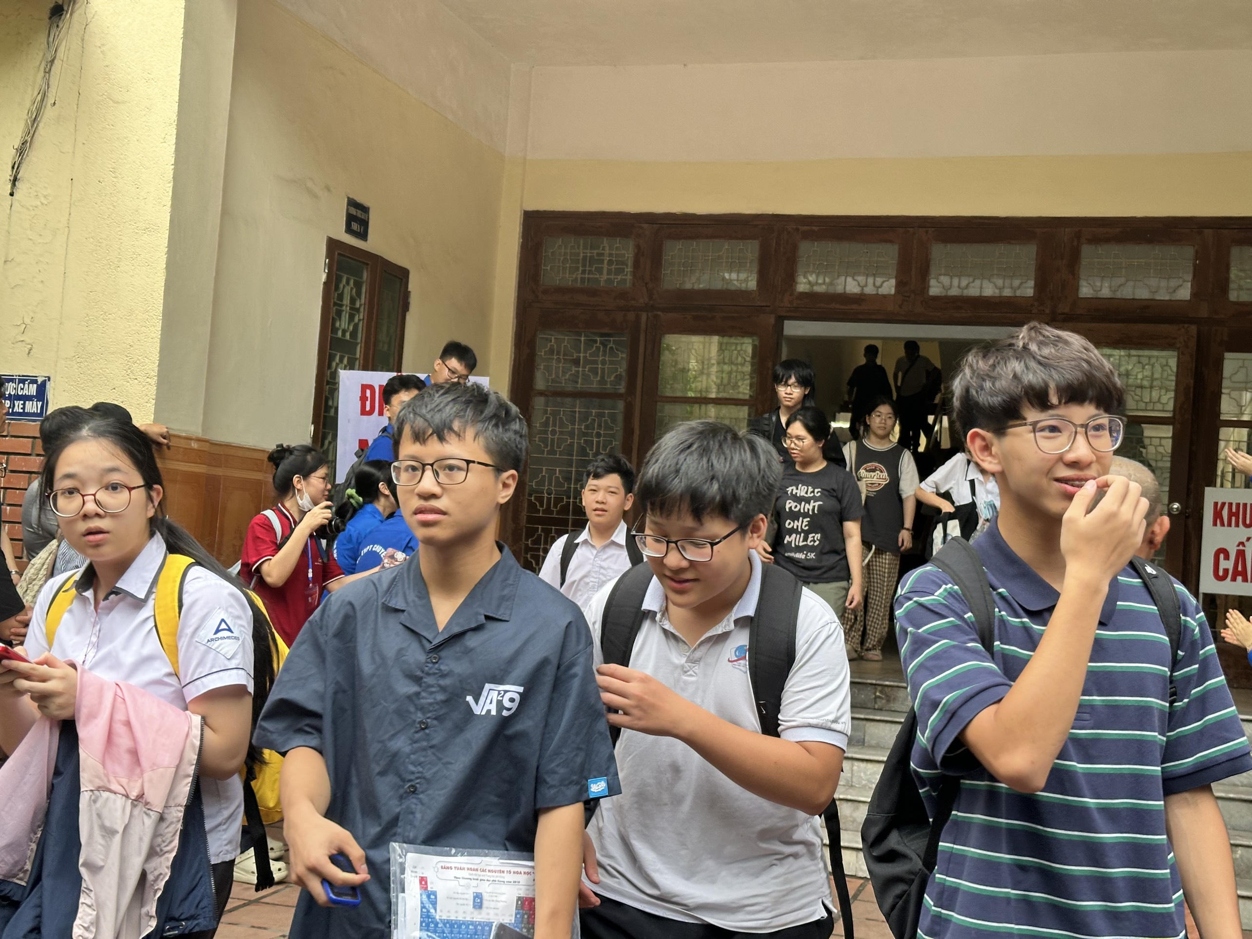 Đăng ký dự thi vào lớp chuyên Hóa, Nguyễn Nhật Minh (THCS Lương Thế Vinh, Hà Nội) cho biết, đề thi năm nay không quá khó, riêng môn Hóa có phần nặng về lý thuyết. Đồng tình với quan điểm của Lê Minh (THCS Chu Văn An) chia sẻ: "Đề thi năm nay cũng không quá khó, em dự đoán mình được khoảng 25 - 26 điểm. Hoàn thành xong kỳ thi này em cảm thấy yên tâm phần nào, nhưng cũng khá lo lắng vì vẫn còn 2 kỳ thi ở phía trước. Mục tiêu chính của em năm là THPT chuyên Nguyễn Huệ".