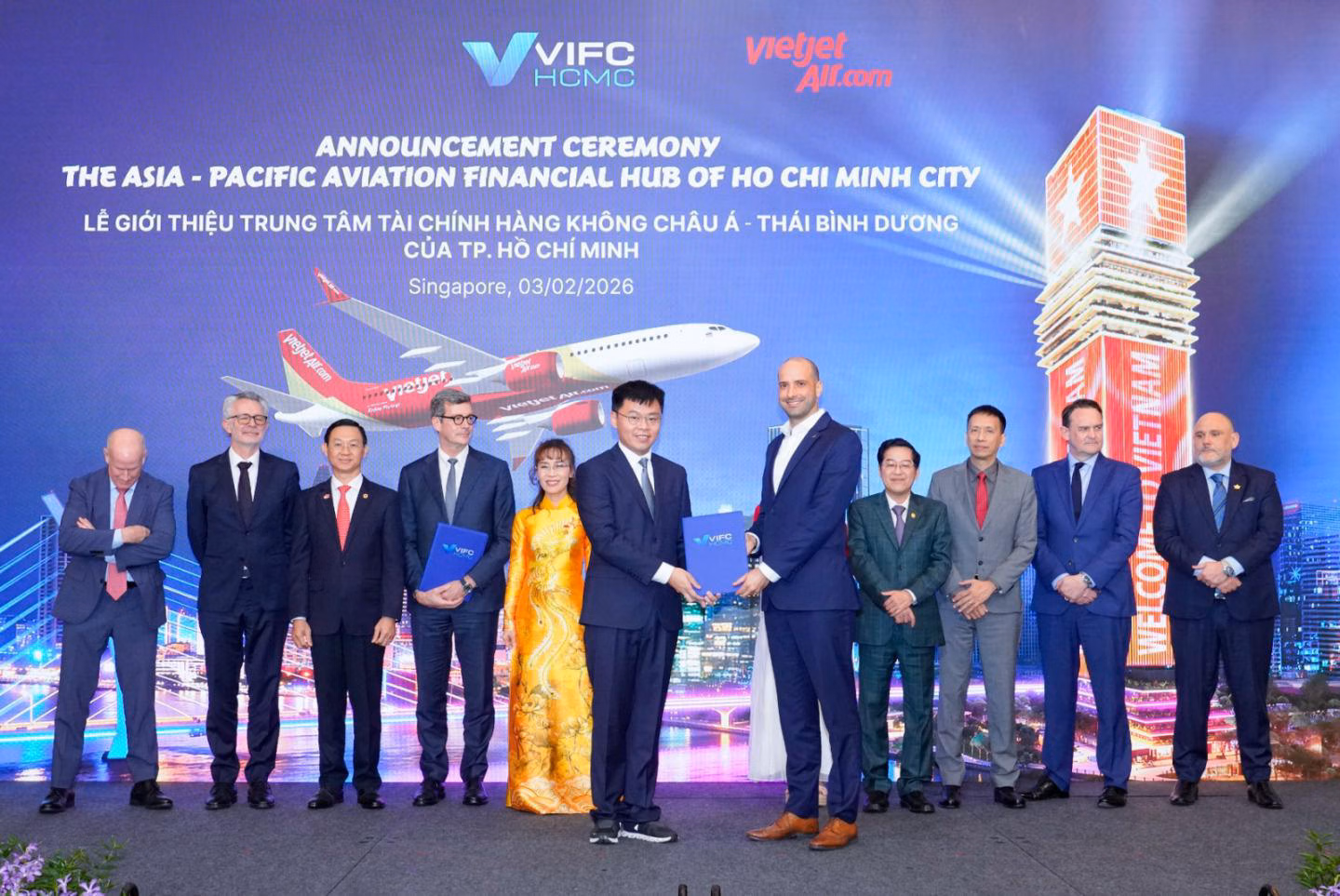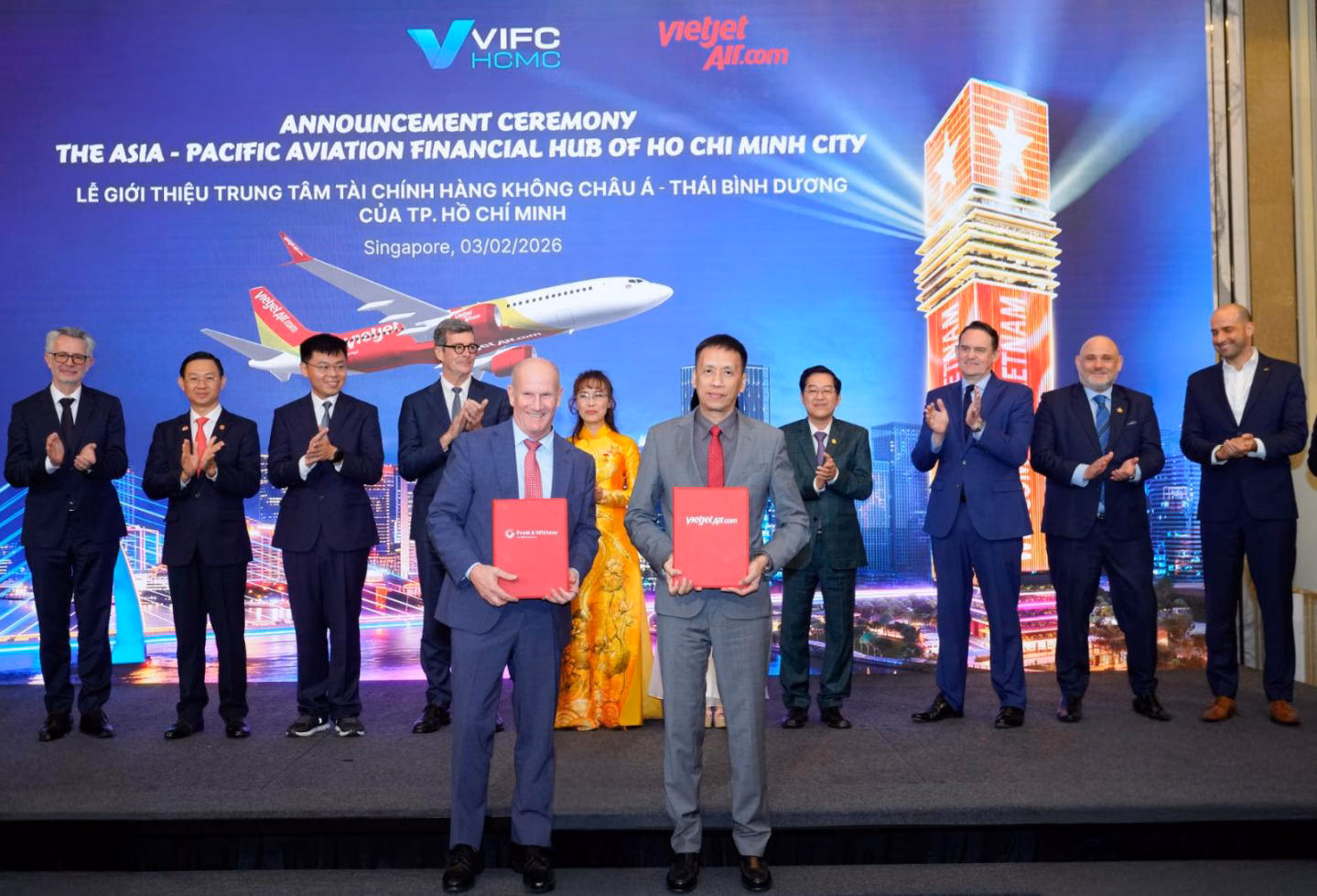 Nngày 4/2/2026 – Trung tâm Tài chính Quốc tế Việt Nam tại TP HCM (VIFC-HCM) và Vietjet đã công bố Trung tâm Tài chính Hàng không châu Á – Thái Bình Dương (Asia-Pacific Aviation Financial Hub – AAFH) tại Triển lãm Hàng không Quốc tế Singapore Airshow 2026, với sự tham dự của các tập đoàn sản xuất máy bay, động cơ và các định chế tài chính hàng đầu thế giới như Airbus, Boeing, CFM International, Pratt & Whitney, Rolls-Royce và Hiệp hội Vận tải Hàng không Quốc tế (IATA).