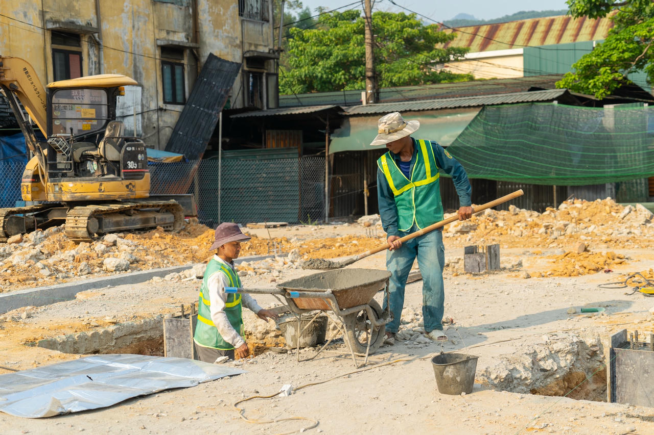 Đại diện Công ty Phan Nguyễn cho biết, đã huy động hơn 20 lao động, chia thành các tổ, đội thi công. Do thời tiết nắng nóng nên đơn vị đã bố trí thời gian làm việc hợp lý, bảo đảm an toàn lao động, chất lượng công trình và kịp tiến độ đề ra.