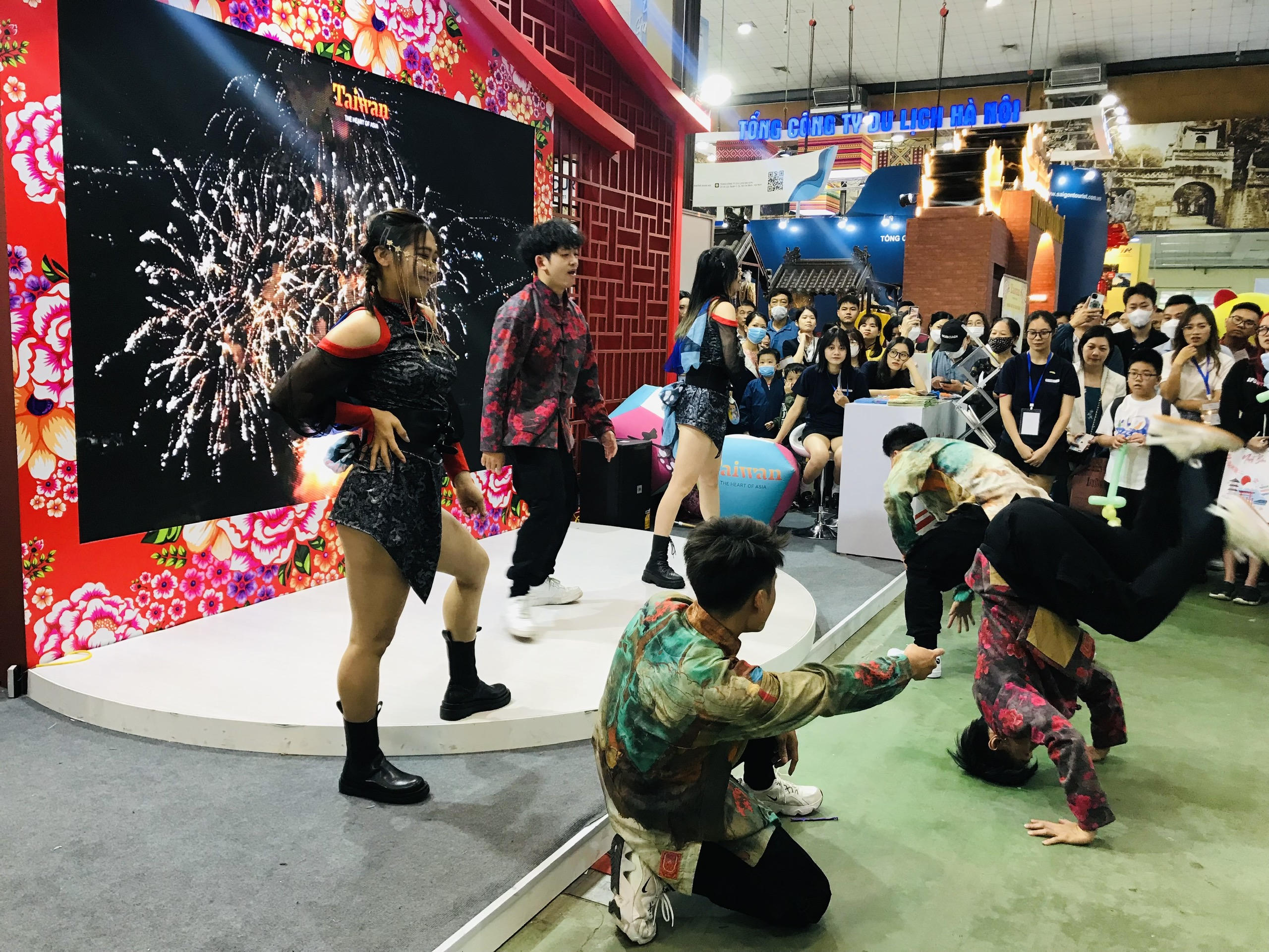 Các nghệ sĩ trẻ nước ngoài biểu diễn tại Hội chợ khiến nhiều du khách thích thú (ảnh Bảo Châu). |