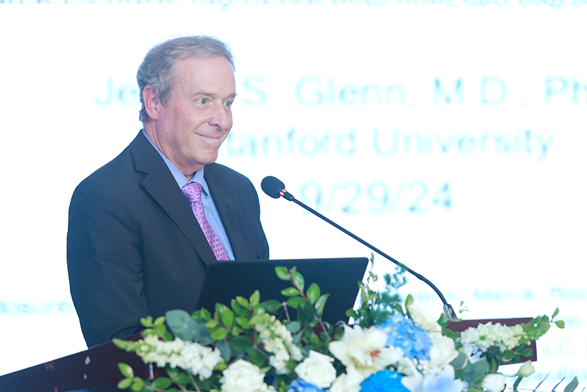 GS.TS.BS Jeffrey S. Glenn, Viện trưởng Viện Nghiên cứu Vi sinh và Chống dịch Stanford báo cáo tại Hội nghị về điều trị viêm gan D. |