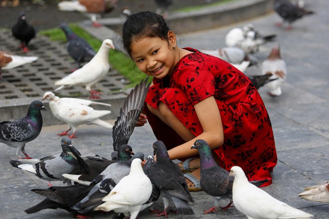 "Con rất thích đàn bồ câu ở nhà thờ vì chúng dễ thương và thông minh", Kim Yến (10 tuổi), chia sẻ.