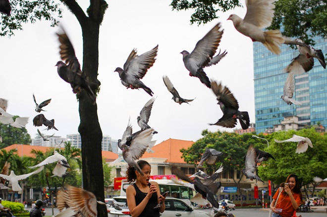 Hơn 10 năm nay, hình ảnh những cánh chim bồ câu bay trước nhà thờ Đức Bà (quận 1, TP HCM) trở nên quen thuộc, được xem như biểu tượng của thành phố.
