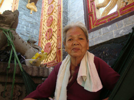 Bà Tư, người bán hàng nước trước cổng chùa bắt chúng tôi phải gọi hòn đá là “ông Tà” chứ không được gọi "hòn đá", thì mới đồng ý tiếp chuyện. Bà giải thích, núi Châu Thới là núi đá nên khi làm đường xây bậc thang lên chùa, người ta phải đào bỏ rất nhiều đá chắn ngang, không hiểu tại sao duy nhất hòn đá này lại không thể đục bỏ.