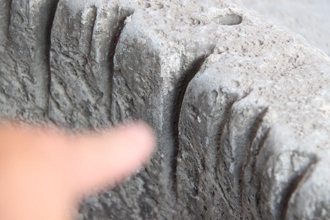 Thứ duy nhất quý của giếng cổ bây giờ, mà theo cụ Hồng là ở cái thành giếng và miệng giếng mà thôi. Cầm cái ba toong có gắn chân quỳ, cụ Hồng chỉ vào những đường rãnh của miệng giếng đá: “Mấy chục cái đường rãnh vào đá ấy là do các đời dùng dây gầu kéo nước.