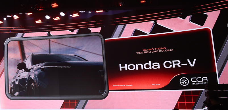 Tại Giải thưởng “Better Choice Awards 2024”, vượt qua nhiều đối thủ mạnh trong danh sách đề cử, mẫu SUV nổi tiếng của Honda Việt Nam - Honda CR-V đã được nhận giải thưởng “Xe phổ thông tiêu biểu cho gia đình”. Điều này là minh chứng cho sự tin yêu của khách hàng cũng như đánh giá cao của Hội đồng thẩm định chuyên môn cao, một lần nữa khẳng định cam kết mang đến những sản phẩm chất lượng và hướng tới khách hàng của Honda Việt Nam.