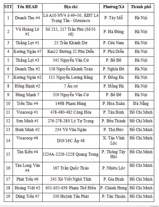 Chương trình được áp dụng tại 19 Cửa hàng Bán xe và Dịch vụ do Honda Ủy nhiệm (HEAD) uy tín hàng đầu ở 3 thành phố lớn là Hà Nội, TP Hồ Chí Minh và Đà Nẵng.