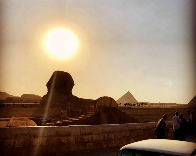 (PLO) -Đứng từ Kim tự tháp Gizah dễ thấy bầu khí quyển đặc quánh xám tro nhưng vẻ đẹp ngỡ ngàng của nơi này vẫn khiến nữ diễn viên mê đắm.