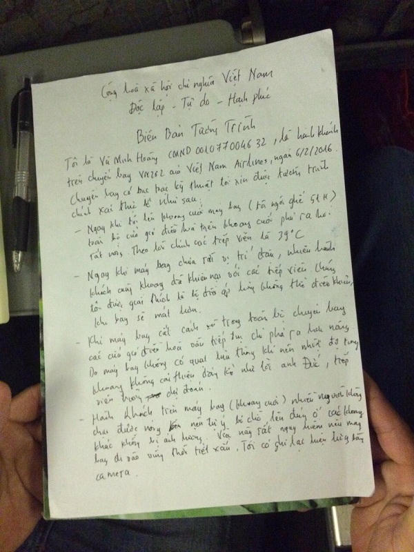 Bản thân tiếp viên trưởng và tiếp viên khi chúng tôi chất vấn thì họ đều biết trước lỗi này trước khi bay. Kể cả ngưỡng nhiệt độ là 30 độ cũng không thể chấp nhận chứ đừng nói ngưỡng nhiệt độ thông báo rằng 38,7 độ sau khi cất cánh được 20 phút.
