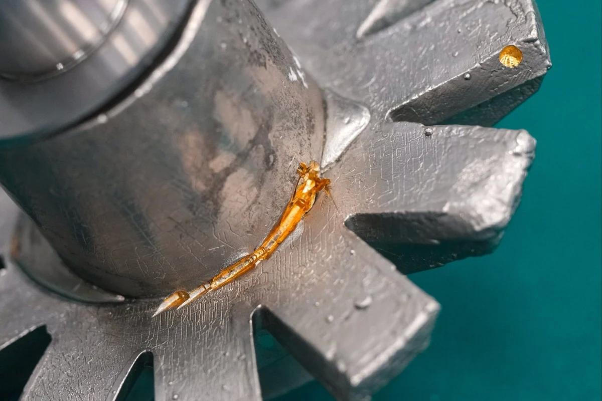 Các viên vàng nguyên chất đã được đúc thành các bộ phận của máy nén khí |