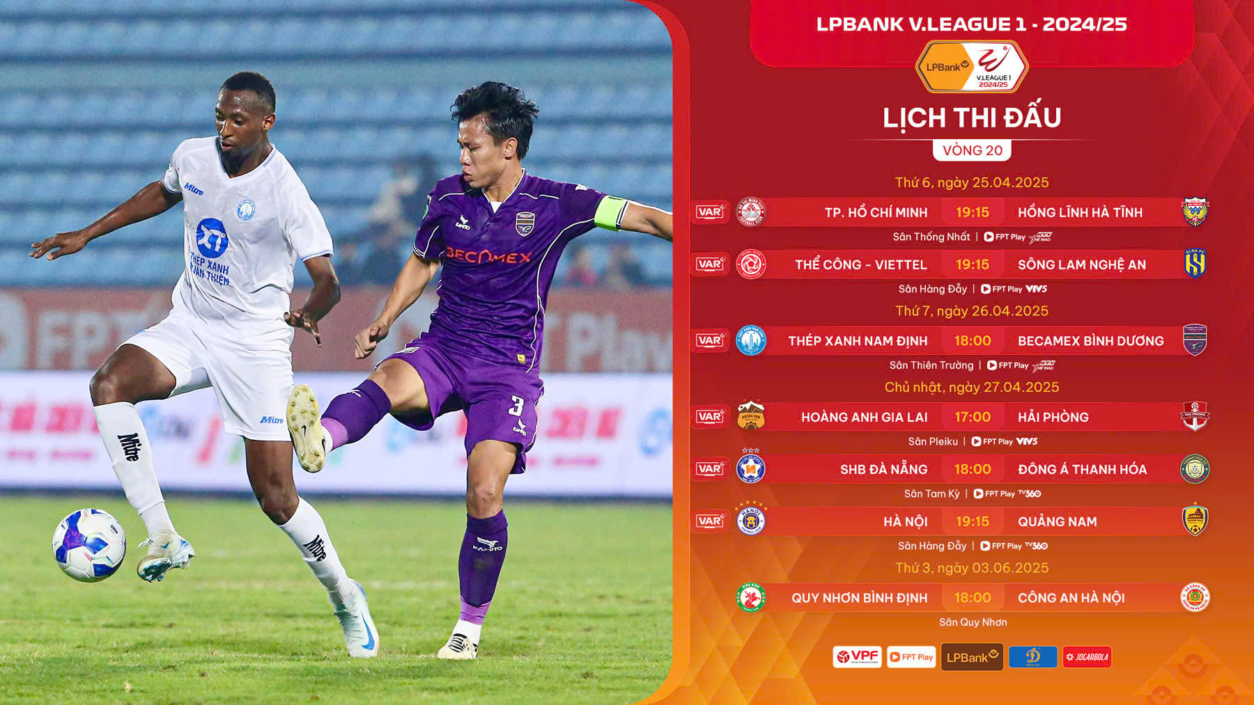 Vòng 20 V.League 2024/25 được đánh giá là giai đoạn căng thẳng của các CLB khi tiến về đích. Cả trụ hạng và vô địch đều khó lường.