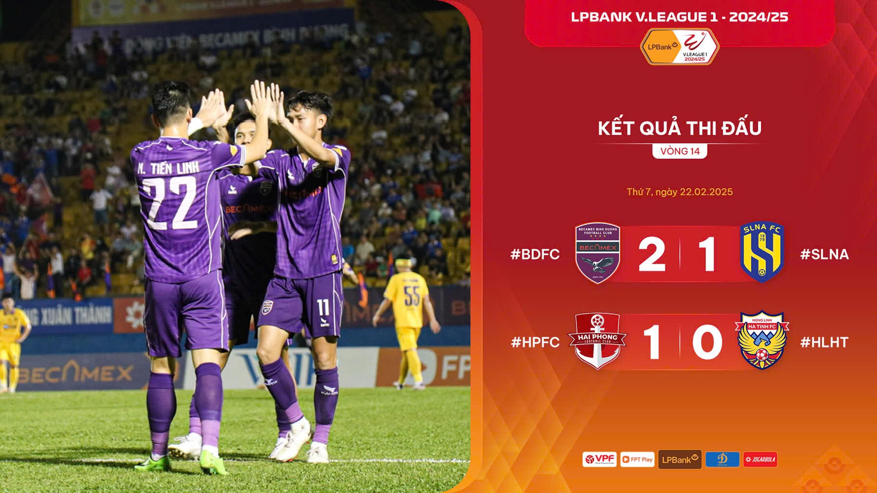 3 trận đầu tiên của vòng 14 V.League 2024/25 chứng kiến những chiến thắng “vàng”. CLB B.Bình Dương giành chiến thắng quan trọng đánh dấu bước trở lại đường đua vô địch. CLB Hải Phòng có chiến thắng để tiếp tục hành trình vượt khó và trước đó CLB Hà Nội cũng giành chiến thắng tưng bừng để tiến sát tốp 3.