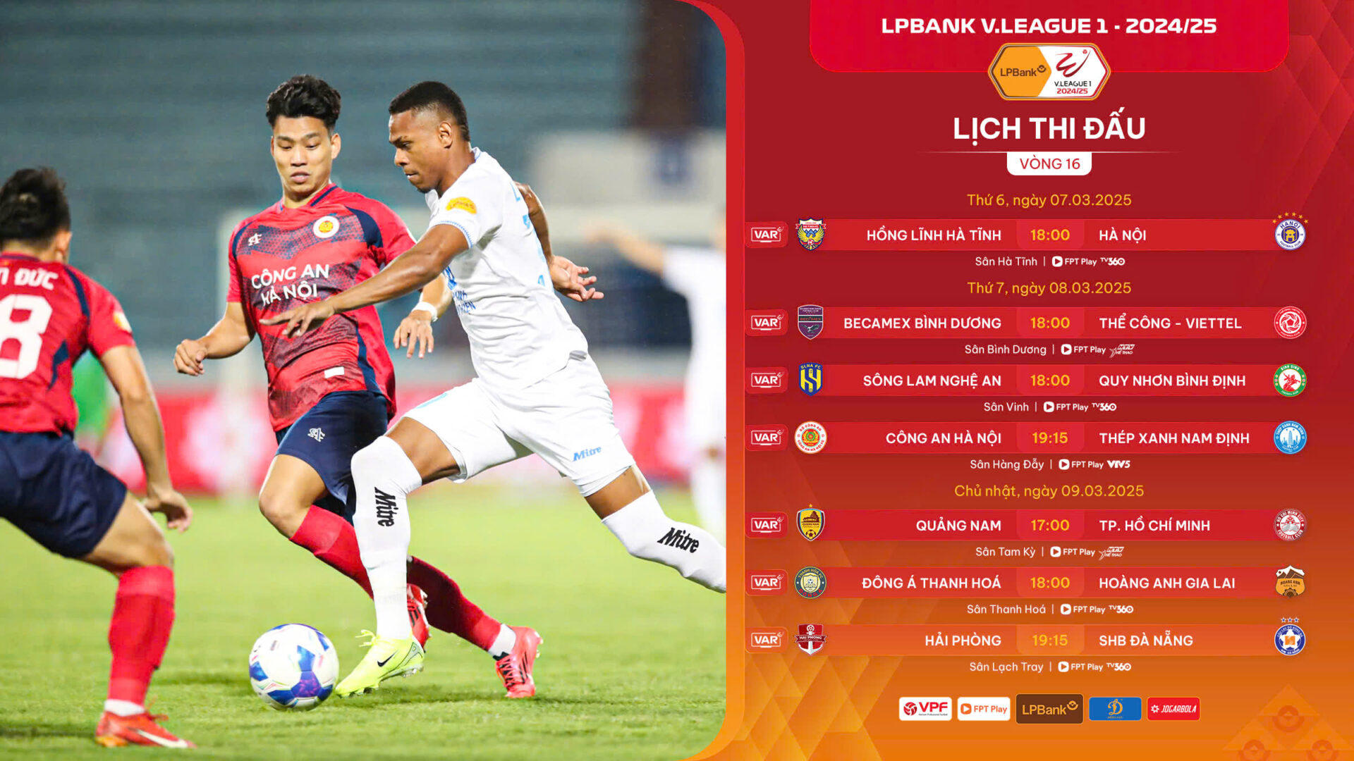 Các trận đấu tiếp theo của vòng 16 V.League sẽ tiếp tục diễn ra vào thứ 7 và Chủ nhật. Đáng chú ý là cuộc đối đầu của hai "nhà vua" Thép Xanh Nam Định và Công an Hà Nội vào ngày 8/3.