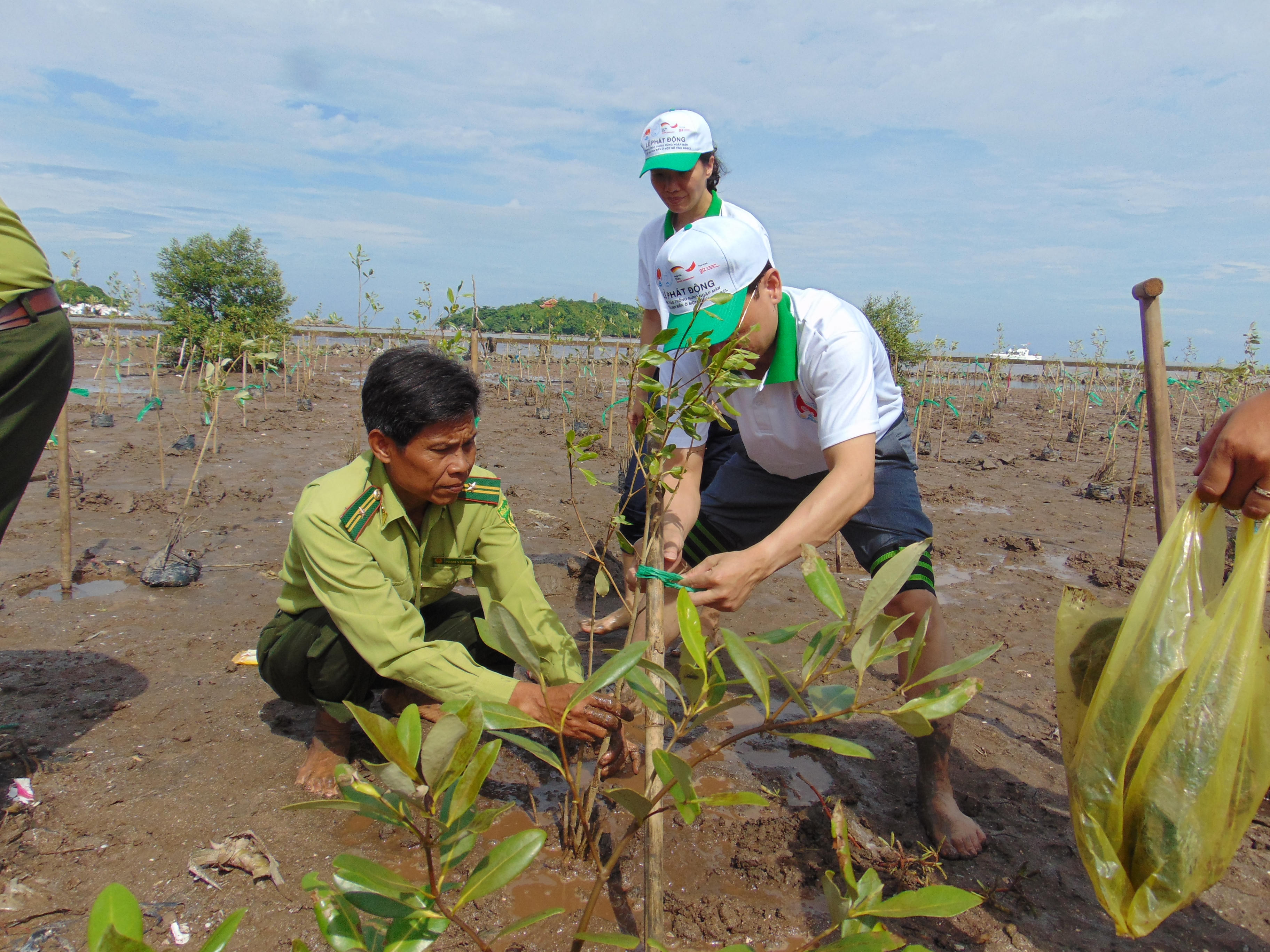 Sau lễ phát động, các đại biểu đã tham gia Lễ ra quân trồng rừng ngập mặn tại khu vực bãi bồi sau kè Đá Bạc thuộc ấp Kinh Hòn, Xã Khánh Bình Tây, huyện Trần Văn Thời.