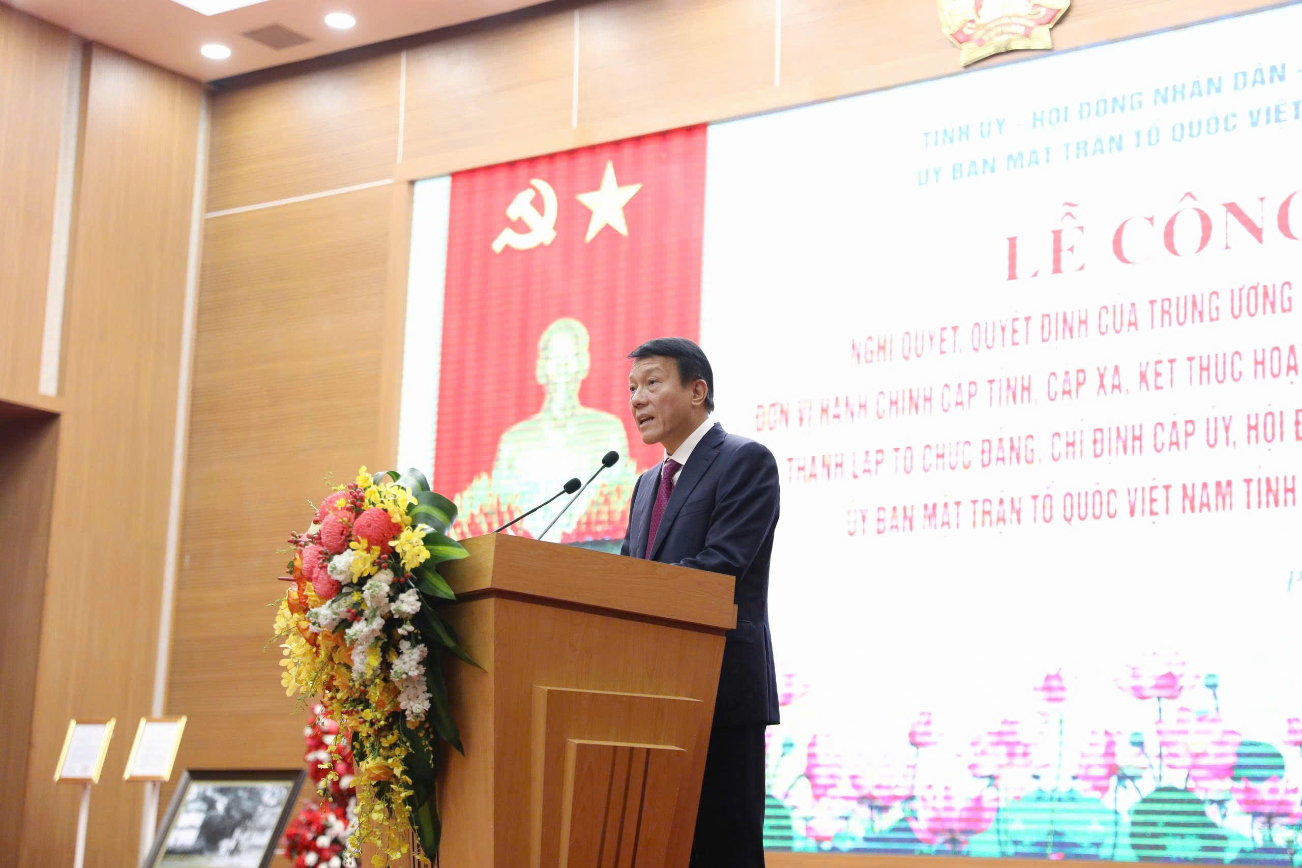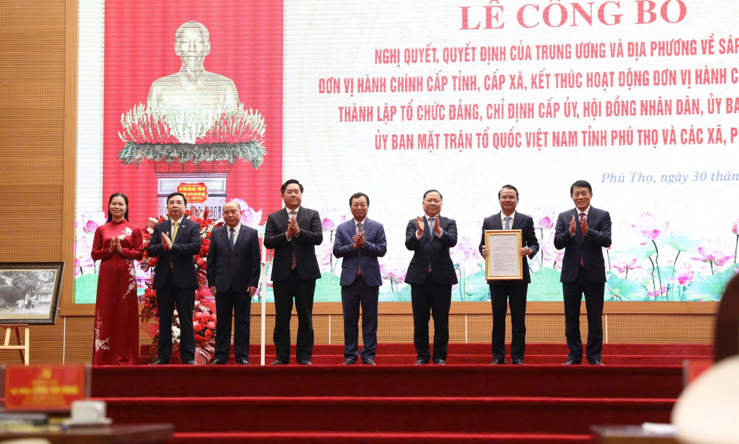 Tại buổi lễ, ông Nguyễn Thanh Hải - Ủy viên BCH Trung ương Đảng, Ủy viên Uỷ ban Thường vụ Quốc hội, Chủ nhiệm Ủy ban công tác đại biểu của Quốc hội, Phó Trưởng Ban Tổ chức Trung ương đã công bố các nghị quyết của Quốc hội, quyết định của Bộ Chính trị, Ban Bí thư, Thủ tướng Chính phủ và Ủy ban Trung ương MTTQ Việt Nam liên quan đến việc sáp nhập, sắp xếp đơn vị hành chính cấp tỉnh, cấp xã trên địa bàn tỉnh Phú Thọ (mới); thành lập Đảng bộ tỉnh Phú Thọ, chỉ định Ban Chấp hành, Ban Thường vụ, các chức danh, chức vụ trong các tổ chức đảng, bộ máy chính quyền tỉnh Phú Thọ (mới).