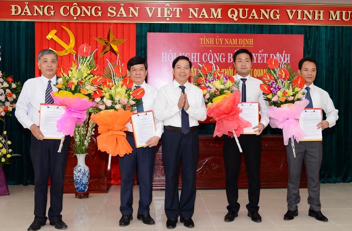 Theo đó, Ban thường vụ Tỉnh ủy Nam Định cũng ban hành Quyết định về việc chỉ định Ban chấp hành, Ban thường vụ Đảng ủy Khối các cơ quan và doanh nghiệp tỉnh, nhiệm kỳ 2015-2020; chỉ định ông Hoàng Văn Tuyến, Tỉnh ủy viên, Bí thư Đảng ủy Khối doanh nghiệp tỉnh giữ chức vụ Bí thư Đảng ủy Khối các cơ quan và doanh nghiệp tỉnh nhiệm kỳ 2015-2020; chỉ định 3 cán bộ khác giữ chức vụ Phó Bí thư. Sau khi sáp nhập Đảng bộ Khối mới có tổng cộng 162 tổ chức cơ sở đảng trực thuộc.