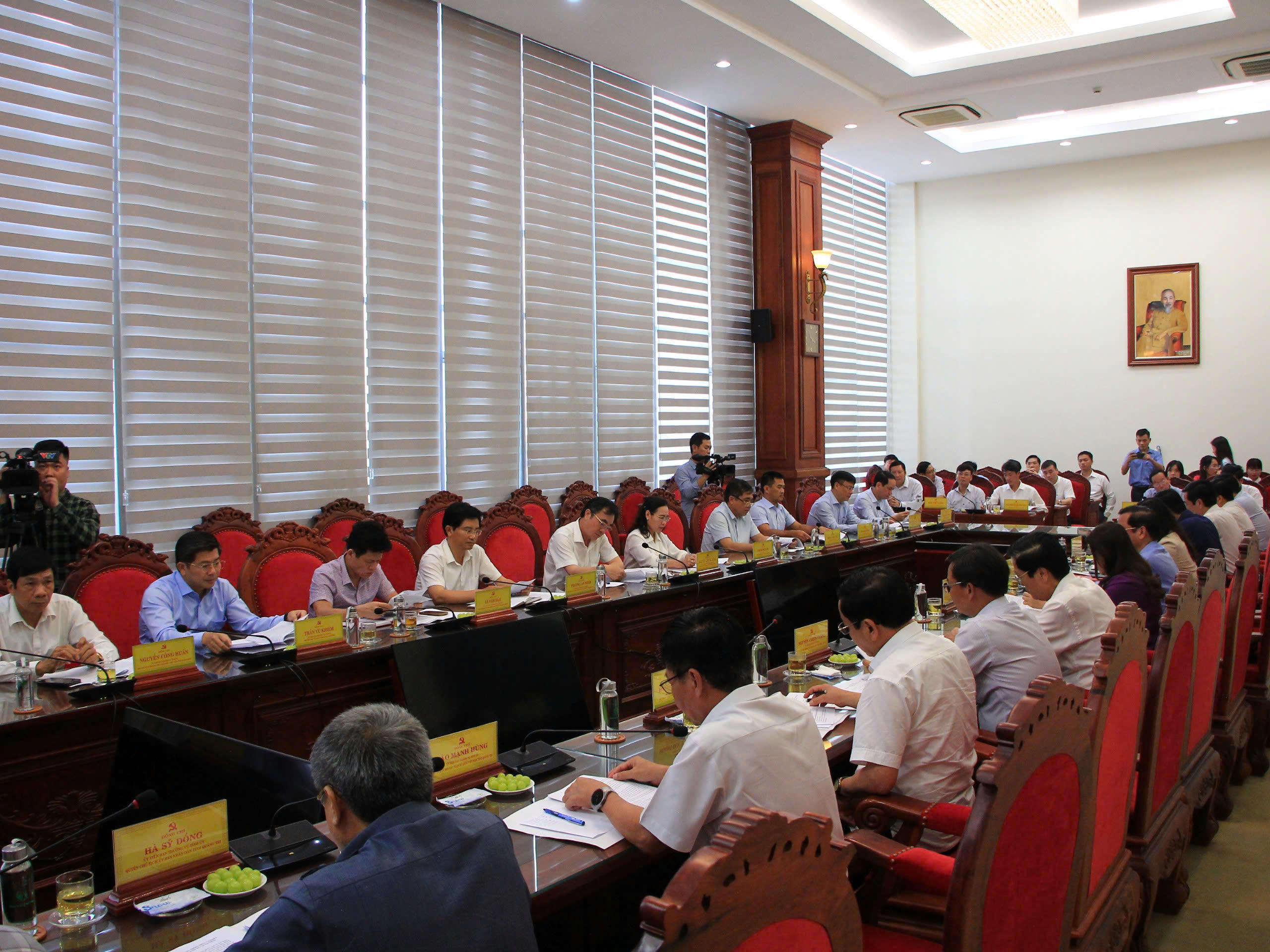 Quang cảnh cuộc họp bàn hợp nhất 2 tỉnh Quảng Bình và Quảng Trị chiều ngày 17/4. |