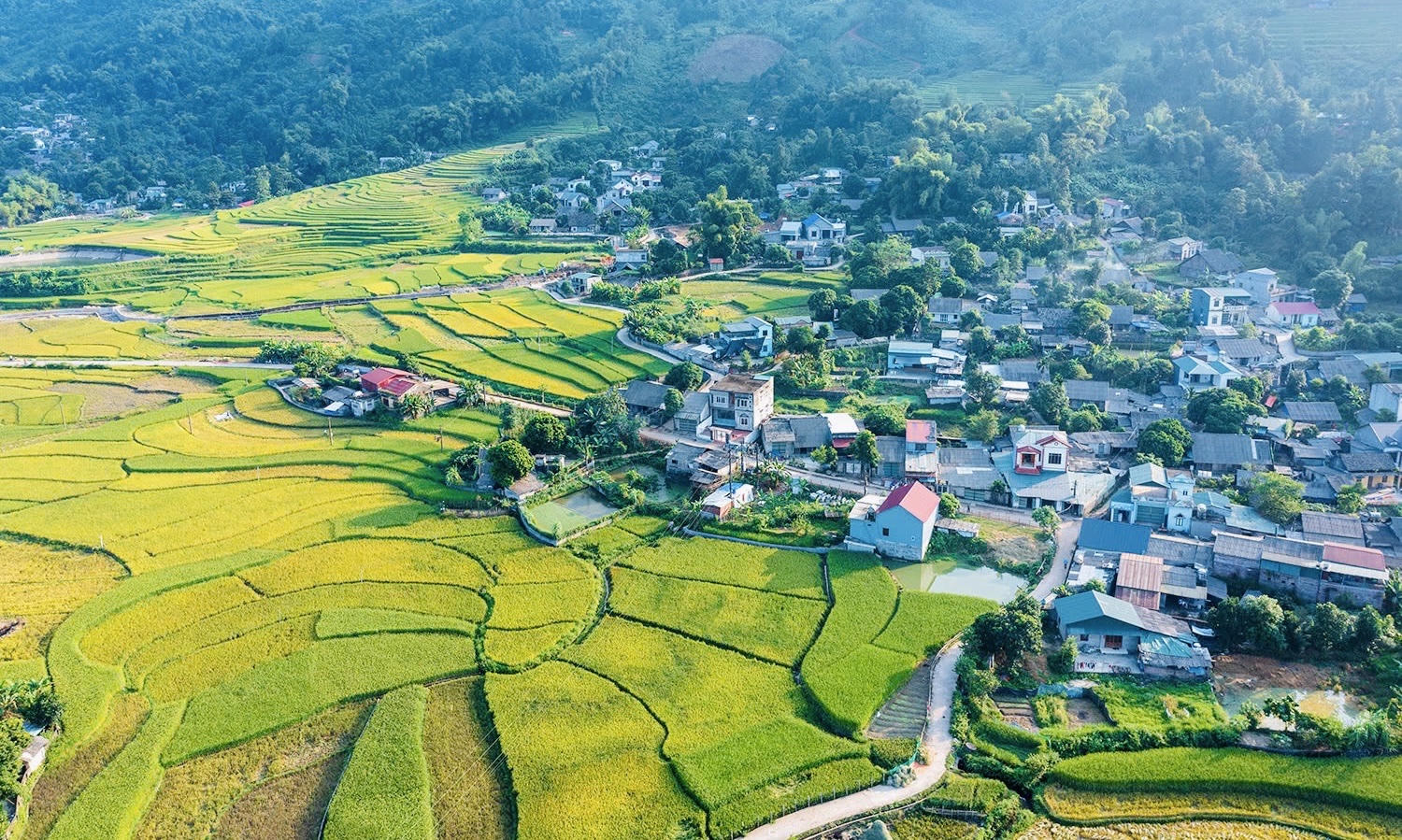 Đến với xã Hợp Thành thành phố Lào Cai dịp này, bạn sẽ được hòa mình vào màu vàng mê đắm của những cánh đồng lúa chín. |