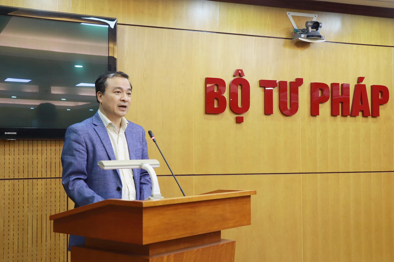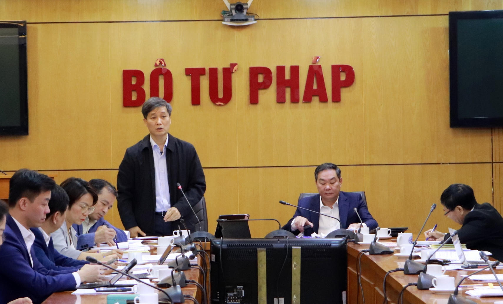 Vụ trưởng Vụ Các vấn đề chung về xây dựng pháp luật Nguyễn Hồng Tuyến báo cáo về kế hoạch của Tổ nghiên cứu. |