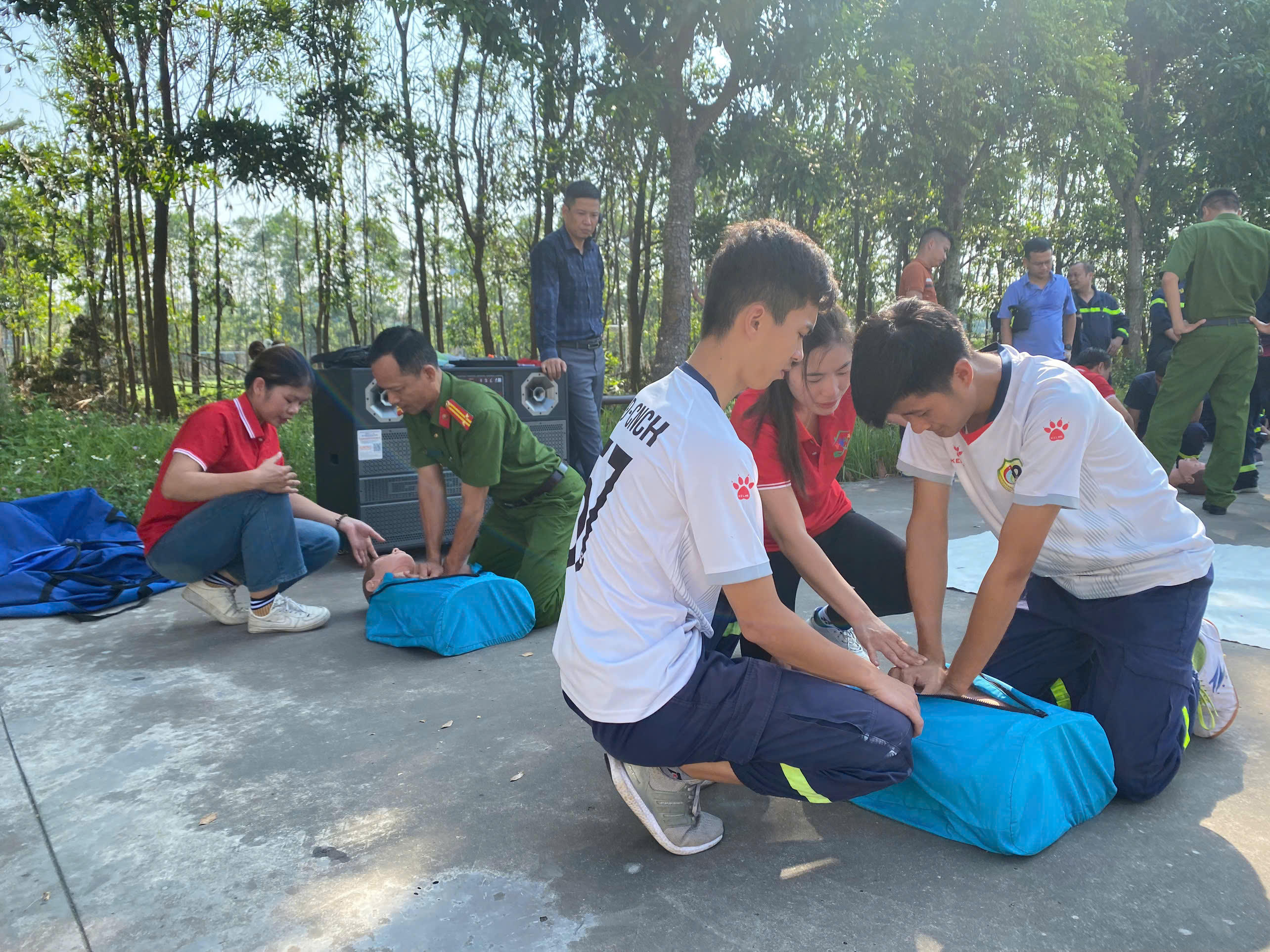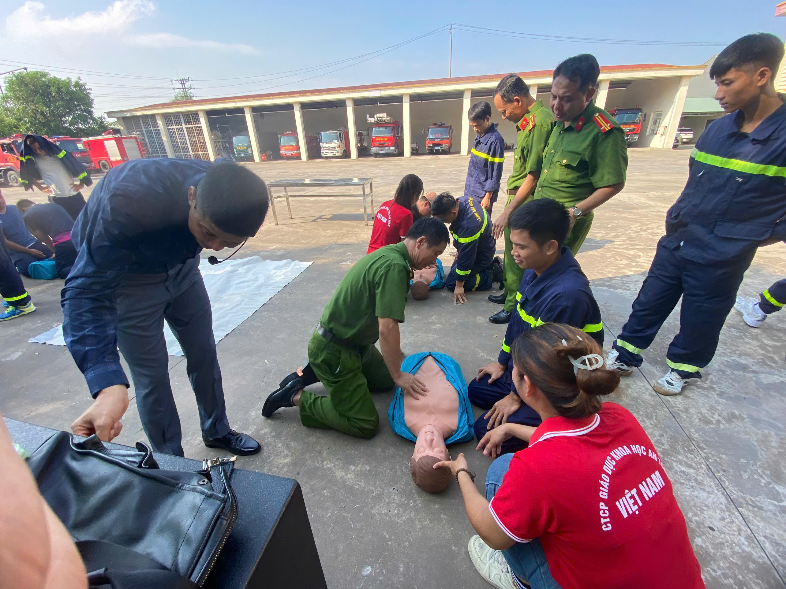 Tại buổi huấn luyện, cán bộ chiến sỹ làm công tác chữa cháy và cứu nạn, cứu hộ đã được giảng viên Công ty cổ phần Giáo dục khoa học an toàn Việt Nam truyền đạt, hướng dẫn, chia sẻ các kỹ năng, cách sơ cấp cứu ban đầu cho người bị nạn bị ngạt khói, ngưng tim, ngưng thở trên mọi lứa tuổi. Được trực tiếp thực hành trên hình nộm.
