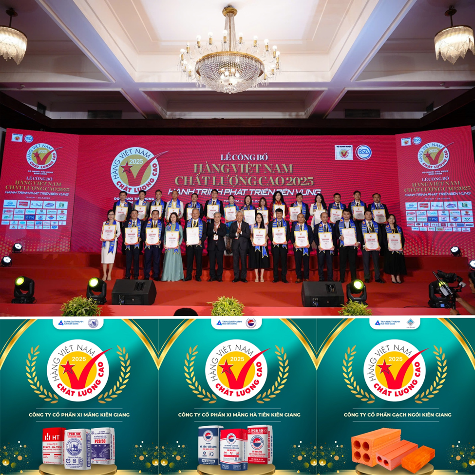 Trong khuôn khổ sự kiện, Công ty Cổ phần Xi măng Kiên Giang, Công ty Cổ phần Xi măng Hà Tiên Kiên Giang và Công ty Cổ phần Gạch Ngói Kiên Giang đã vinh dự được trao danh hiệu Hàng Việt Nam Chất Lượng Cao 2025. Đây là sự ghi nhận xứng đáng cho những nỗ lực không ngừng của các công ty trong việc nâng cao chất lượng sản phẩm, cải tiến công nghệ sản xuất và đáp ứng các tiêu chuẩn khắt khe của ngành vật liệu xây dựng.