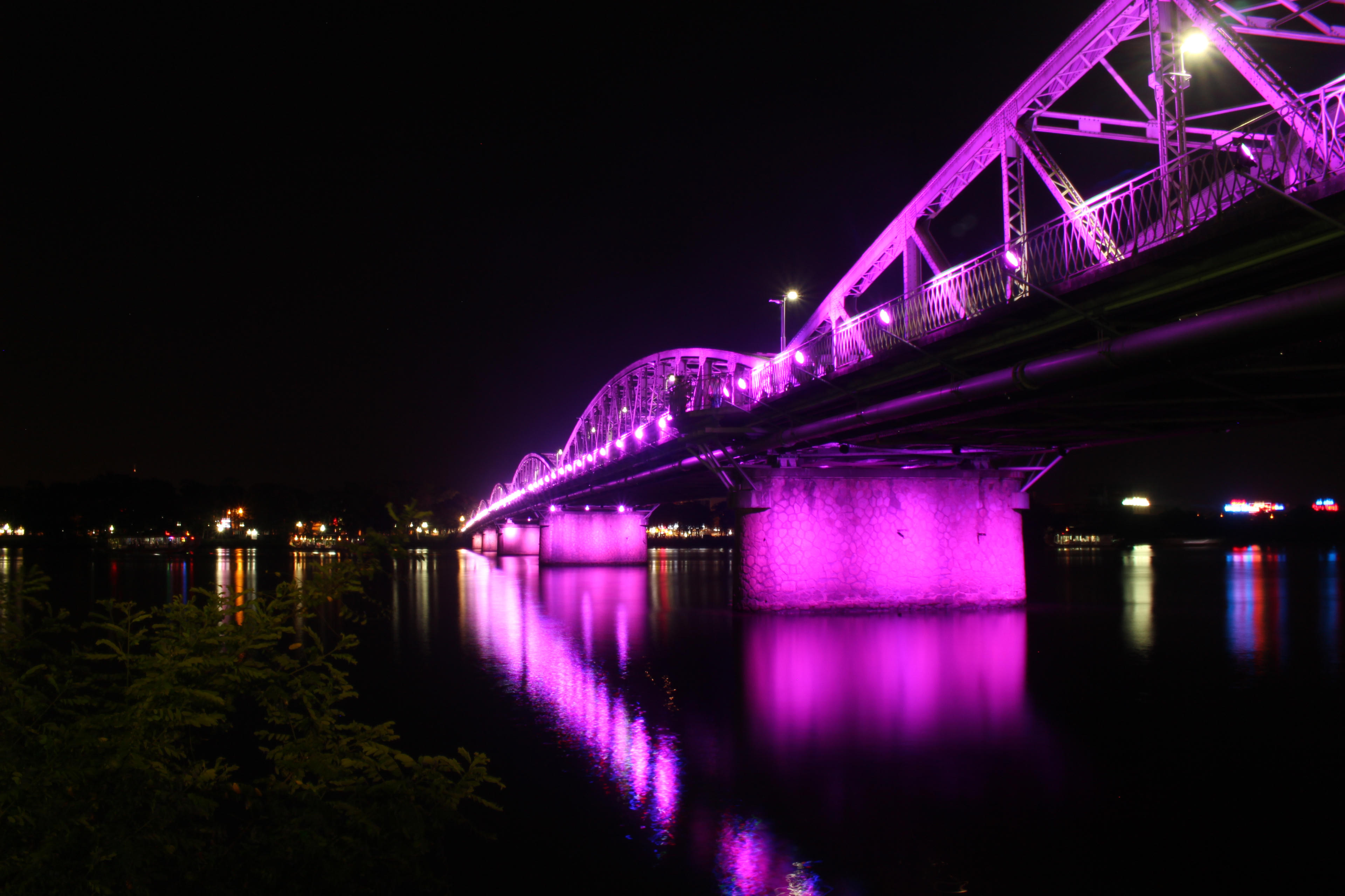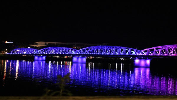 (PLVN) - Thành phố Huế đã đầu tư hơn 10 tỷ đồng lắp đặt hệ thống 210 bộ đèn LED nhiều màu, được điều khiển lập trình trên máy tính, có khả năng tạo ra tất cả mọi hiệu ứng ánh sáng màu cho cây cầu lịch sử này.
