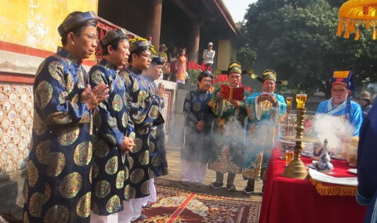 (PLO) - Sáng ngày 14/2 (mùng 7 tết), tại Hiển Lâm Các - Thế Miếu, Đại Nội Huế, Trung tâm bảo tồn Di tích cố đô Huế đã tiến hành lại nghi lễ hạ cây nêu ngày tết.