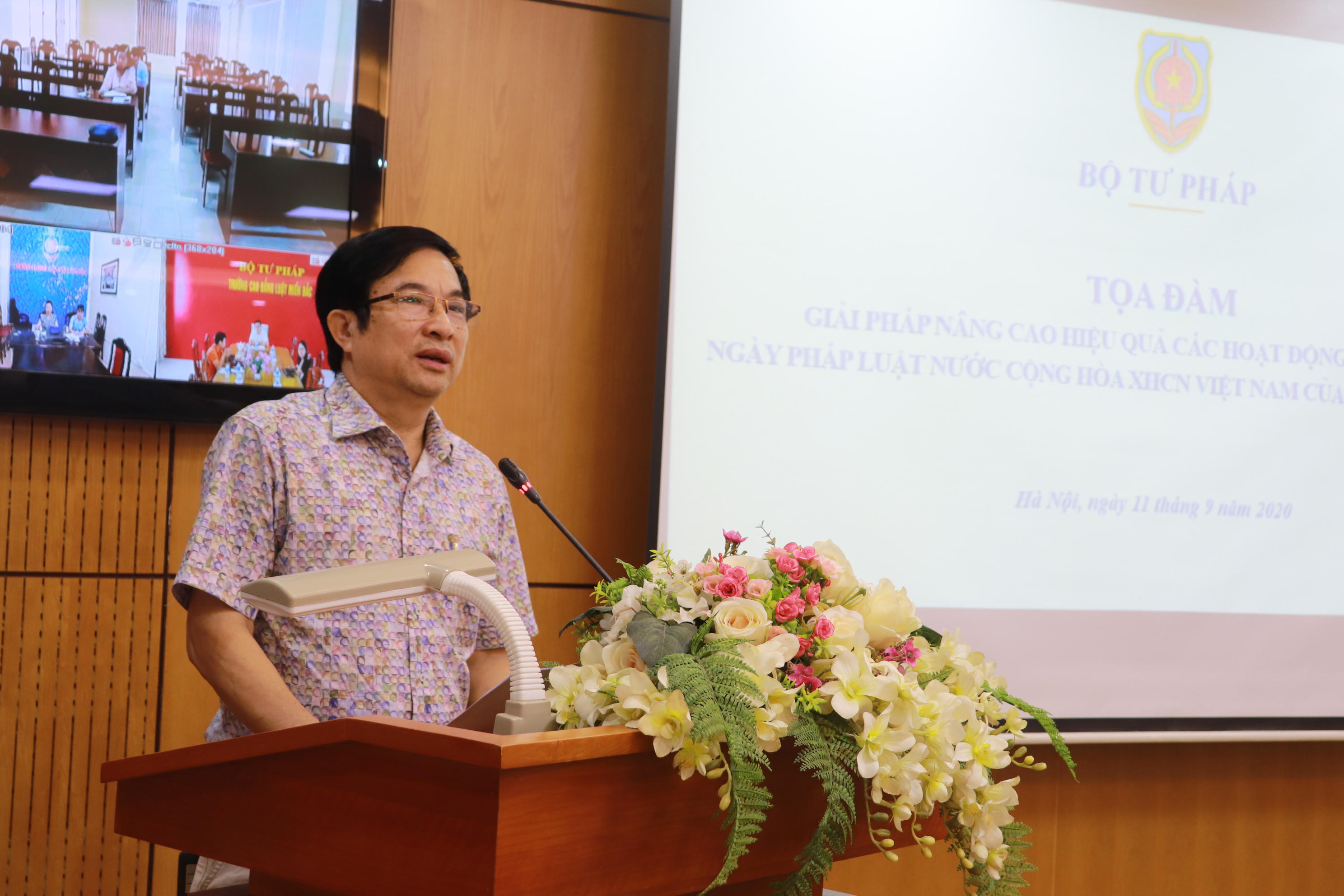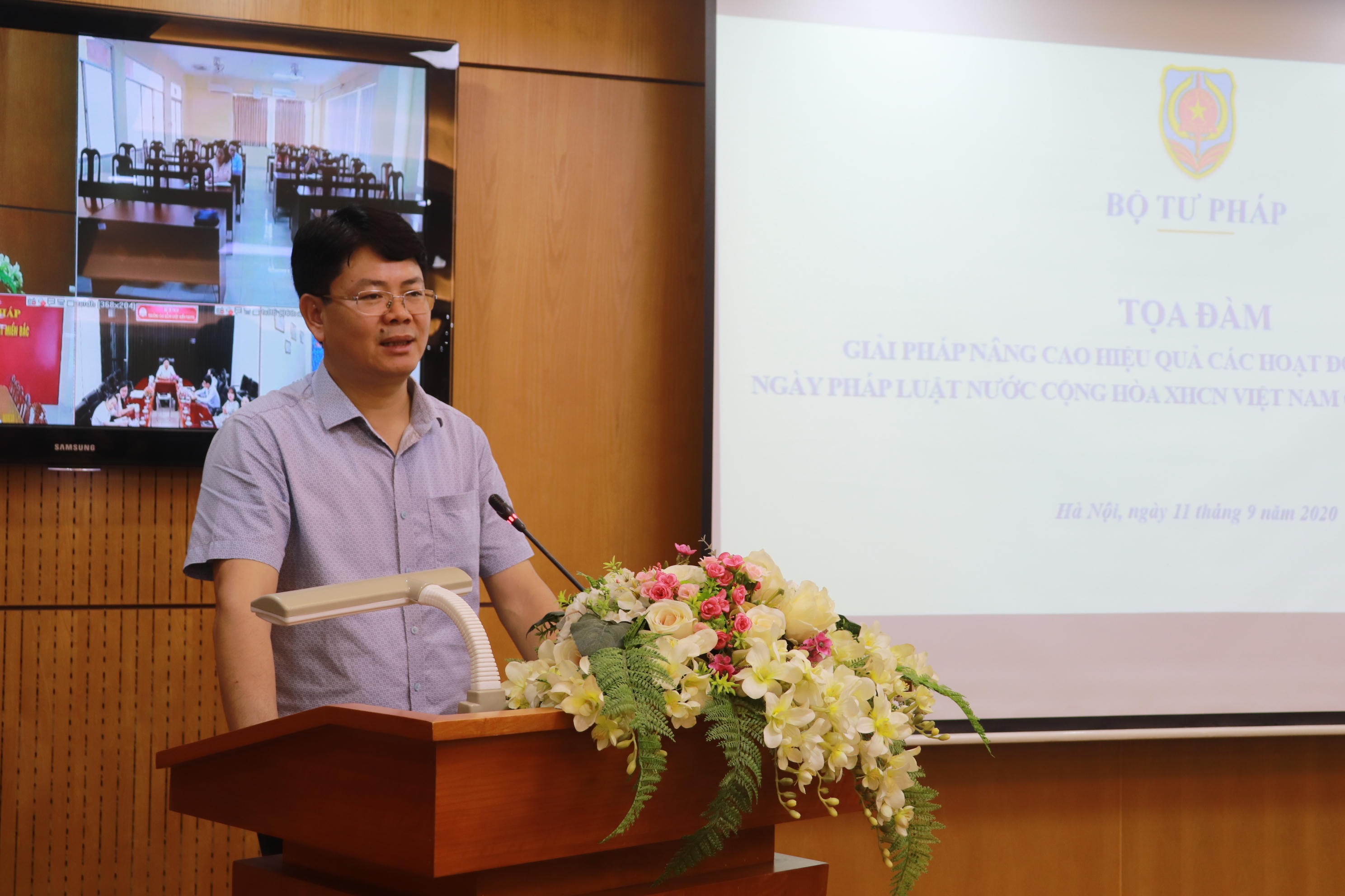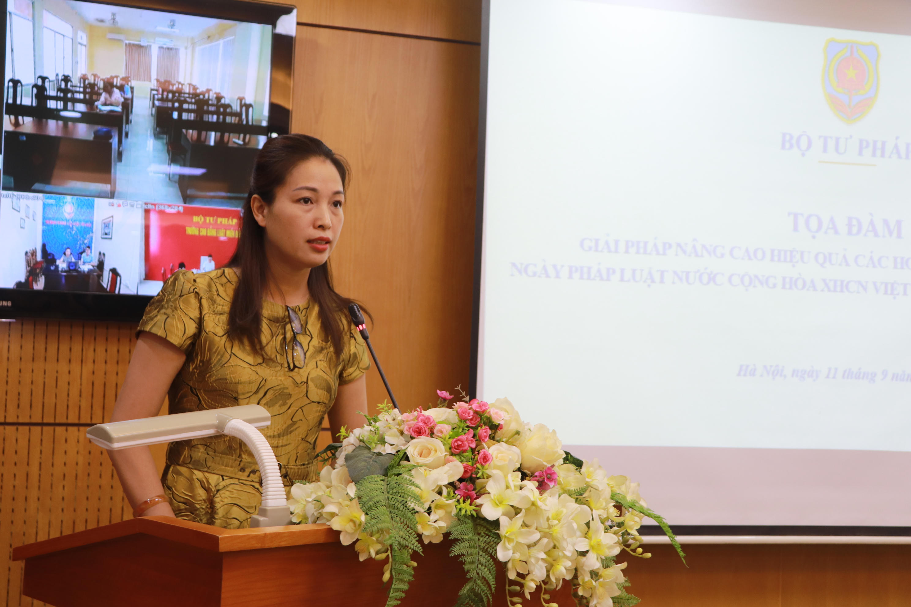 Báo cáo tại Tọa đàm, Phó Vụ trưởng Vụ PBGDPL Phan Hồng Nguyên đã khái quát về sự ra đời của Ngày Pháp luật đồng thời đánh giá việc tổ chức các hoạt động hưởng ứng Ngày Pháp luật thời gian qua. Theo đó, các hoạt động hưởng ứng Ngày Pháp luật Việt Nam đã được các ngành, đoàn thể, địa phương triển khai linh hoạt, sáng tạo. Bộ Tư pháp cũng đã tích cực, chủ động phối hợp với các Bộ, ngành, đoàn thể, địa phương trong triển khai Ngày Pháp luật qua các năm đạt nhiều kết quả nổi bật và trở thành sự kiện nổi bật của ngành trong năm. Qua 8 năm thực hiện, việc tổ chức hưởng ứng Ngày pháp luật trở thành một trong những nhiệm vụ chính trị quan trọng; với sự vào cuộc của các cấp, ngành; đã có nhiều mô hình hay, cách làm hiệu quả, sáng tạo…trong việc hưởng ứng Ngày Pháp luật.