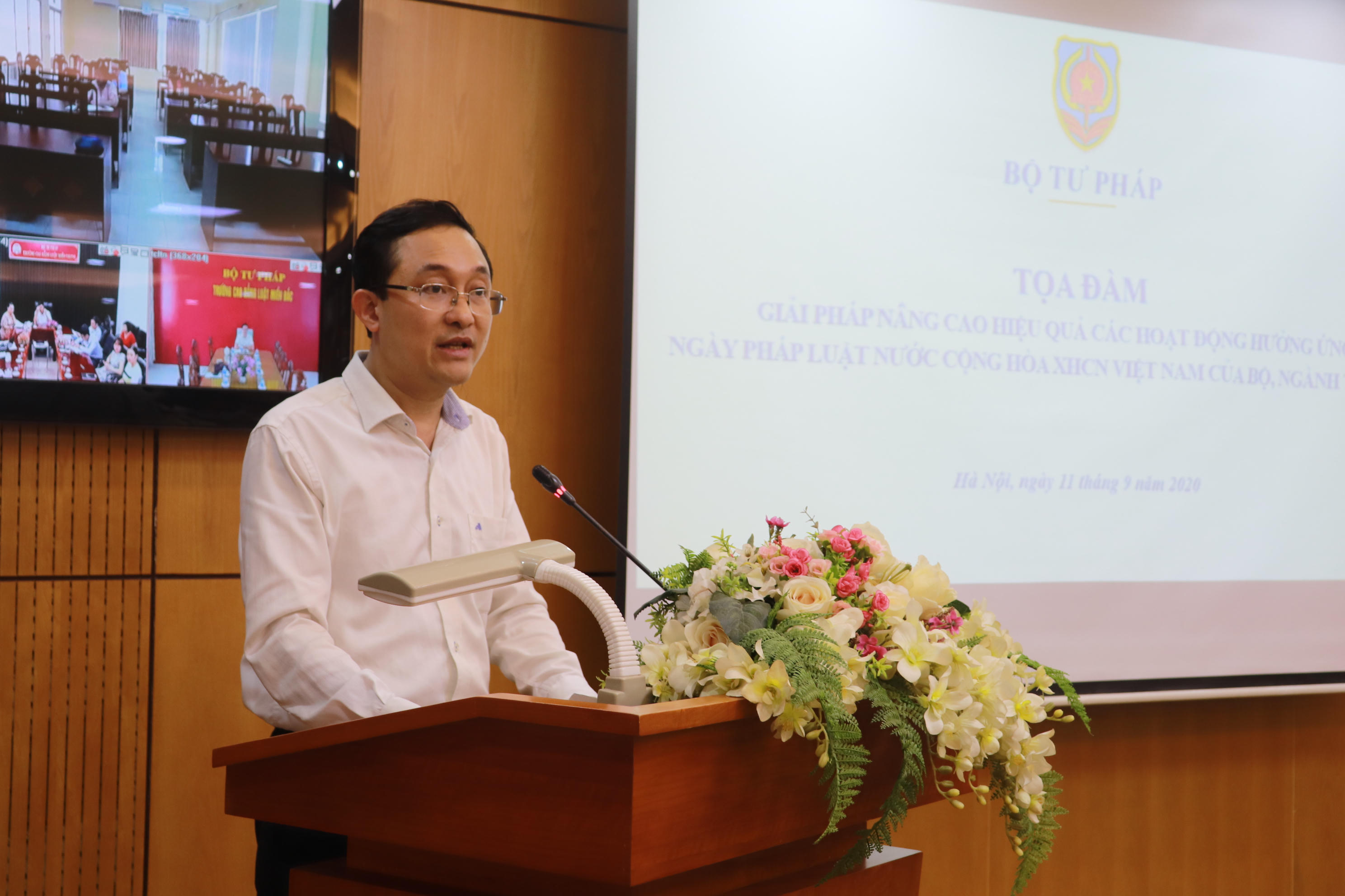 "Bộ Tư pháp mong đợi việc hưởng ứng Ngày Pháp luật Việt Nam chính là sự hun đúc, tạo dựng giá trị xã hội của người làm công tác tư pháp, pháp luật, có như vậy mới tạo được chiều sâu, sự lan tỏa", Thứ trưởng nhấn mạnh.