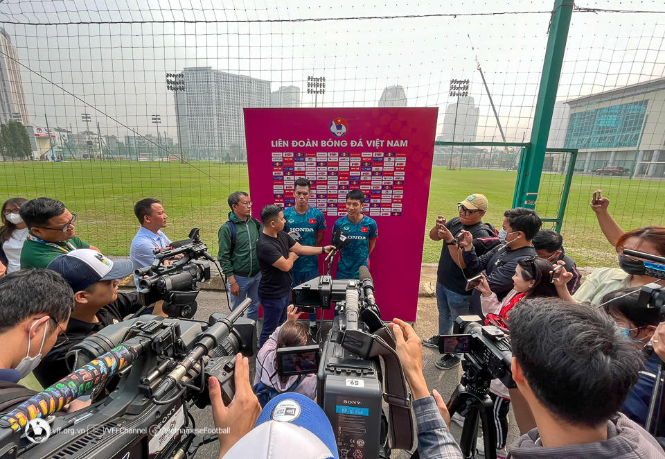 Tiến Linh và Hùng Dũng chia sẻ với truyền thông (ảnh VFF) |