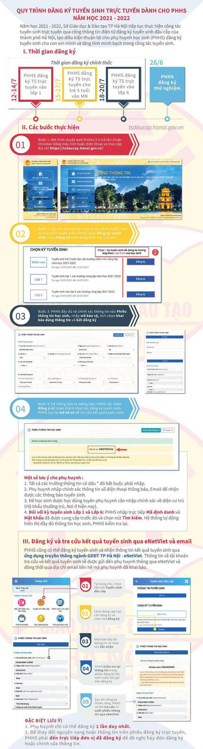Đến ngày 26/6, các cơ sở giáo dục hướng dẫn cha mẹ học sinh thử nghiệm đăng ký tuyển sinh như sau: