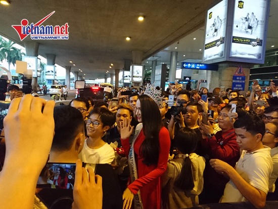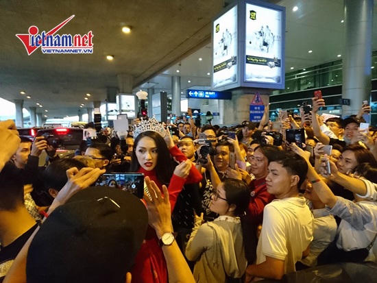 Ngay từ khi xuất hiện, Hương Giang đã khiến cho sảnh chờ tại sân bay náo loạn bởi tiếng hò reo của người hâm mộ đến chào mừng cô ngày mang vinh quang trở về. Không những vậy, rất đông các nhiếp ảnh cùng với phóng viên đã có mặt tại sân bay từ rất sớm để kịp ghi lại những hình ảnh mới nhất của Hương Giang.