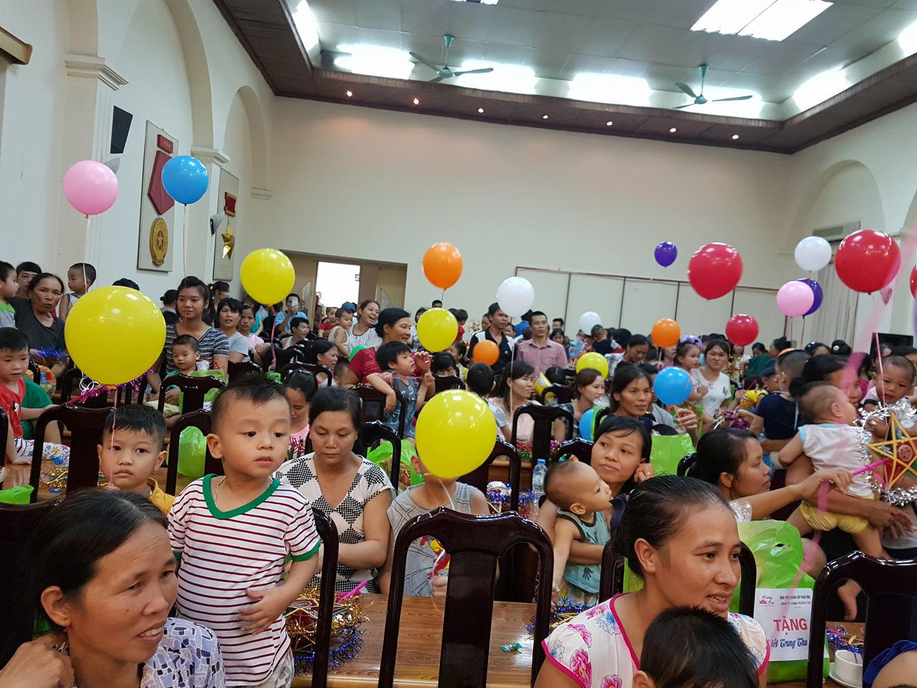 Hơn 200 bé tham dự chương trình được xem múa lân, văn nghệ thiếu nhi, được tặng lồng đèn, bánh trung thu và phá cỗ cùng “chị Hằng”, “chú Cuội”..