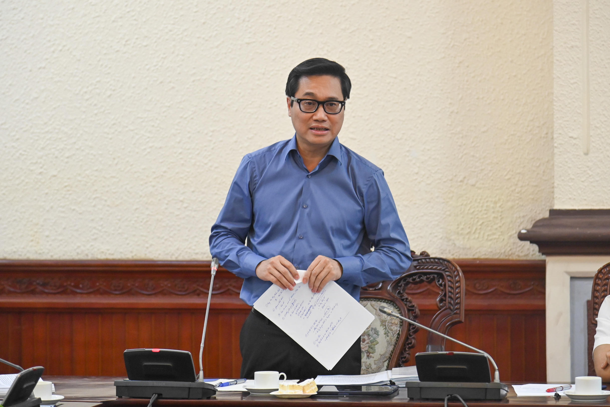 Thứ trưởng Bộ Xây dựng Nguyễn Tường Văn tiếp thu, giải trình các ý kiến của hội đồng thẩm định. |