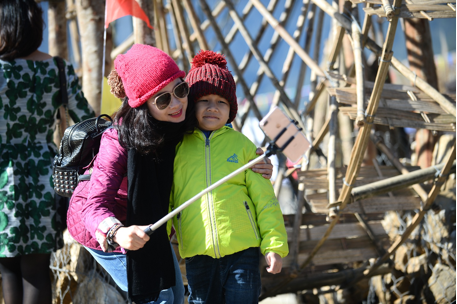 Tại quảng trường ga đến cáp treo Fansipan Sa Pa, các gia đình tận hưởng bầu không khí trong lành ở độ cao 3.000 mét, sưởi nắng, lễ chùa, xin lộc đầu xuân và ghi lại những hình ảnh đẹp trong ngày đầu năm.
