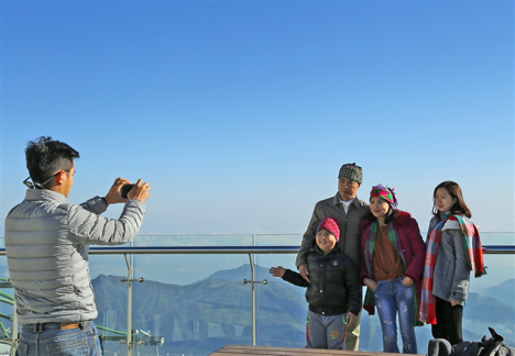 Thời gian từ gần trưa tới giữa chiều là lúc trời trong, nắng đẹp nhất, du khách thích thú khi được trải nghiệm hành trình 15 phút di chuyển trên hệ thống cáp treo 3 dây đạt 2 kỷ lục thế giới Fansipan Sa Pa để ngoạn cảnh Hoàng Liên Sơn và thăm nóc nhà Đông Dương.