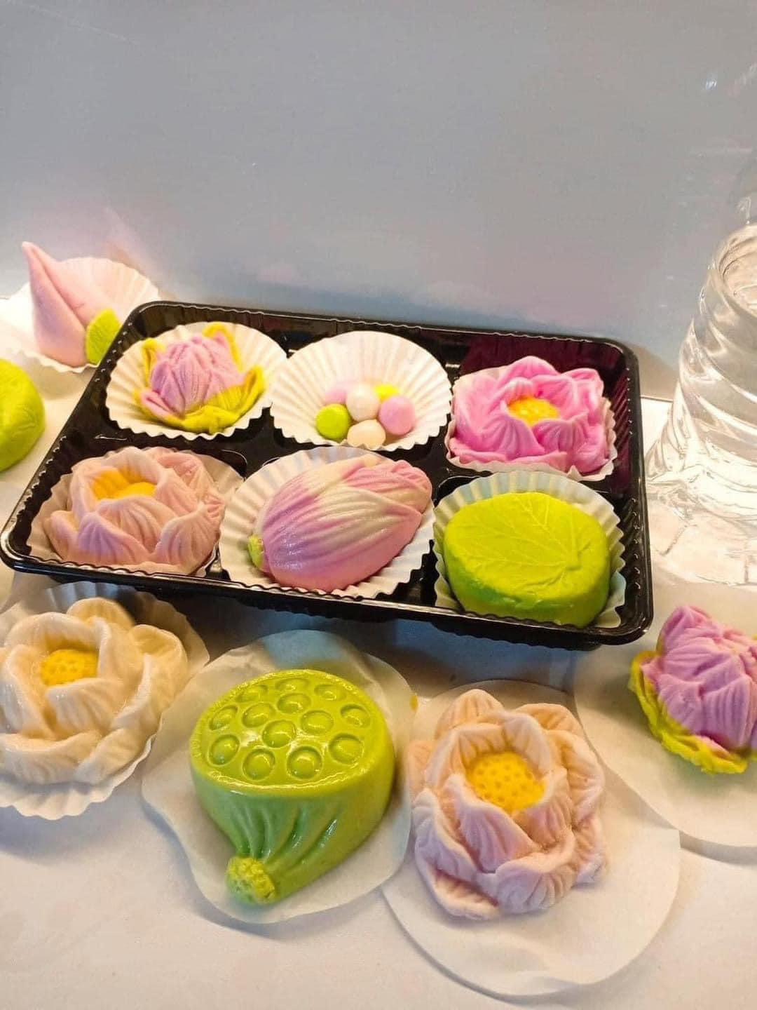 Vẫn là dáng bánh tròn truyền thống những được tạo hình thành bông hoa vô cùng đẹp mắt. (Ảnh: Phương) |