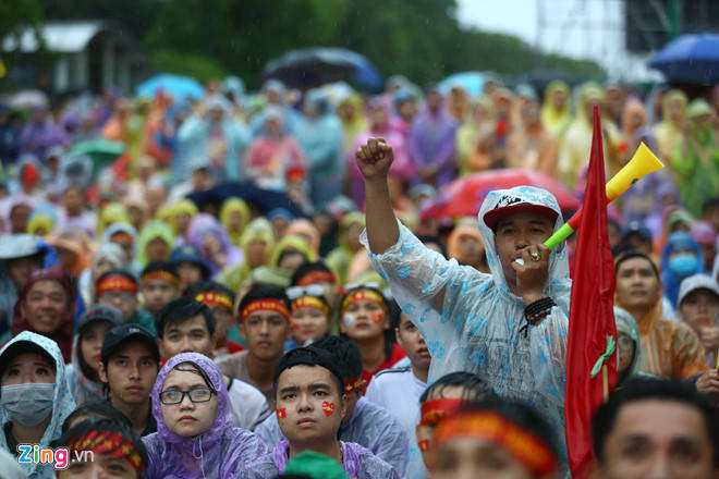 Từ 3h hôm nay, hàng trăm cổ động viên (CĐV), với đồng phục áo hình quốc kỳ, có mặt tại sân bay quốc tế Tân Sơn Nhất và Nội Bà để lên đường sang Indonesia. Khoảng 9h cùng ngày, các cổ động viên Việt Nam đã "nhuộm đỏ" sân bay thủ đô Jakarta, sau đó ra thẳng sân chờ tới giờ bóng lăn cổ vũ Olympic Việt Nam.