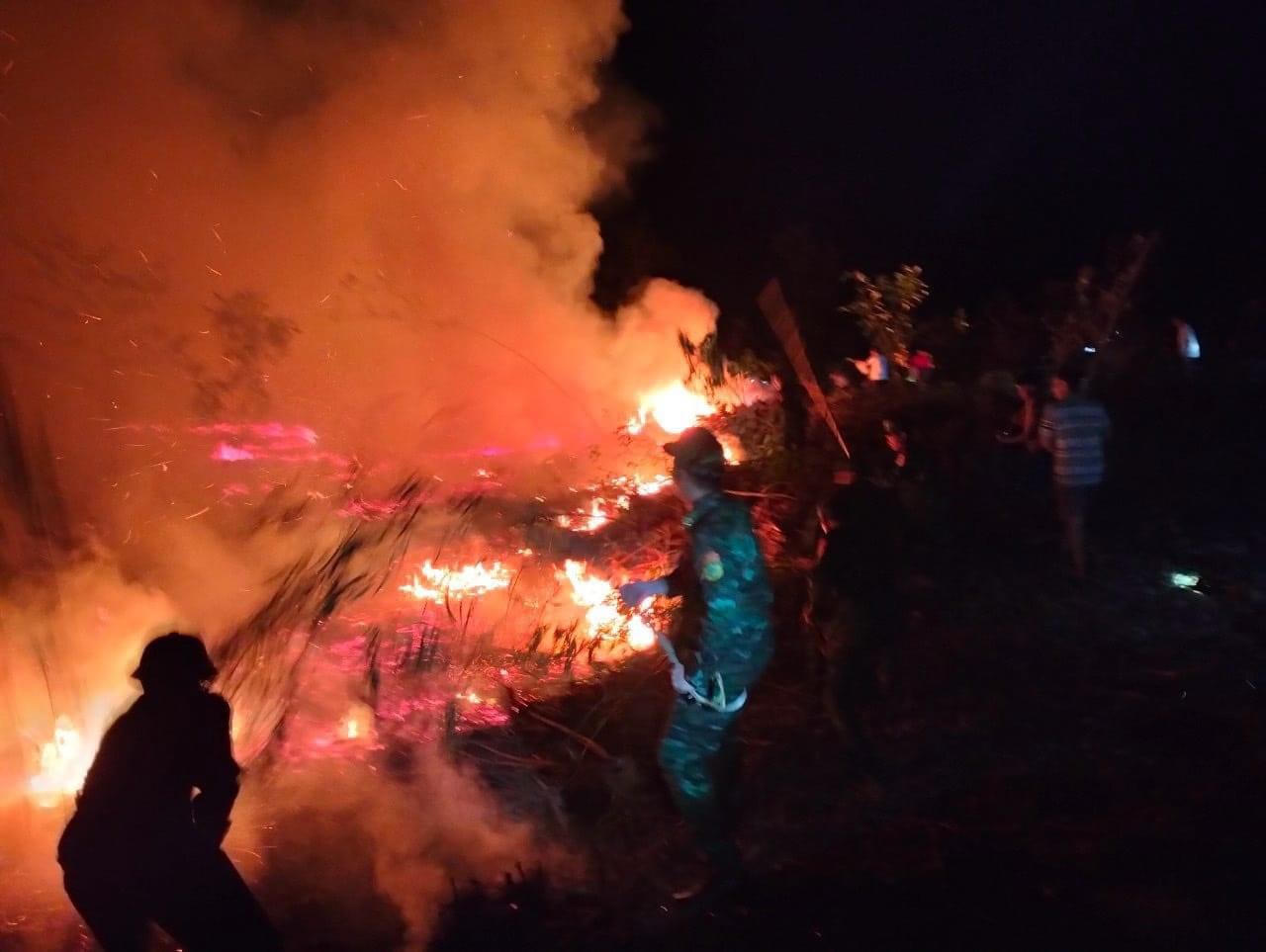 Cán bộ, chiến sĩ và chính quyền địa phương nỗ lực dập lửa. |