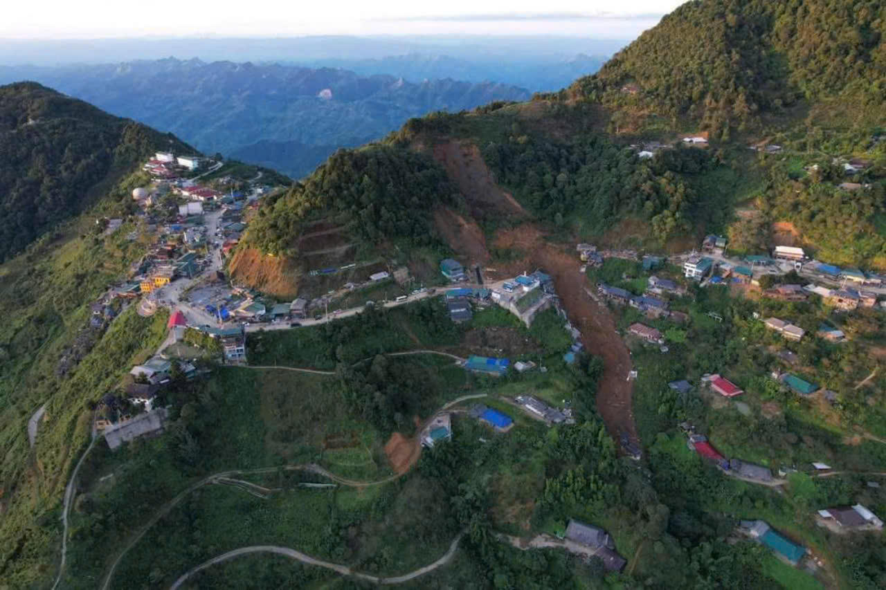 Hình ảnh vụ sạt lở đất nhìn từ xa (Ảnh: CTV). |