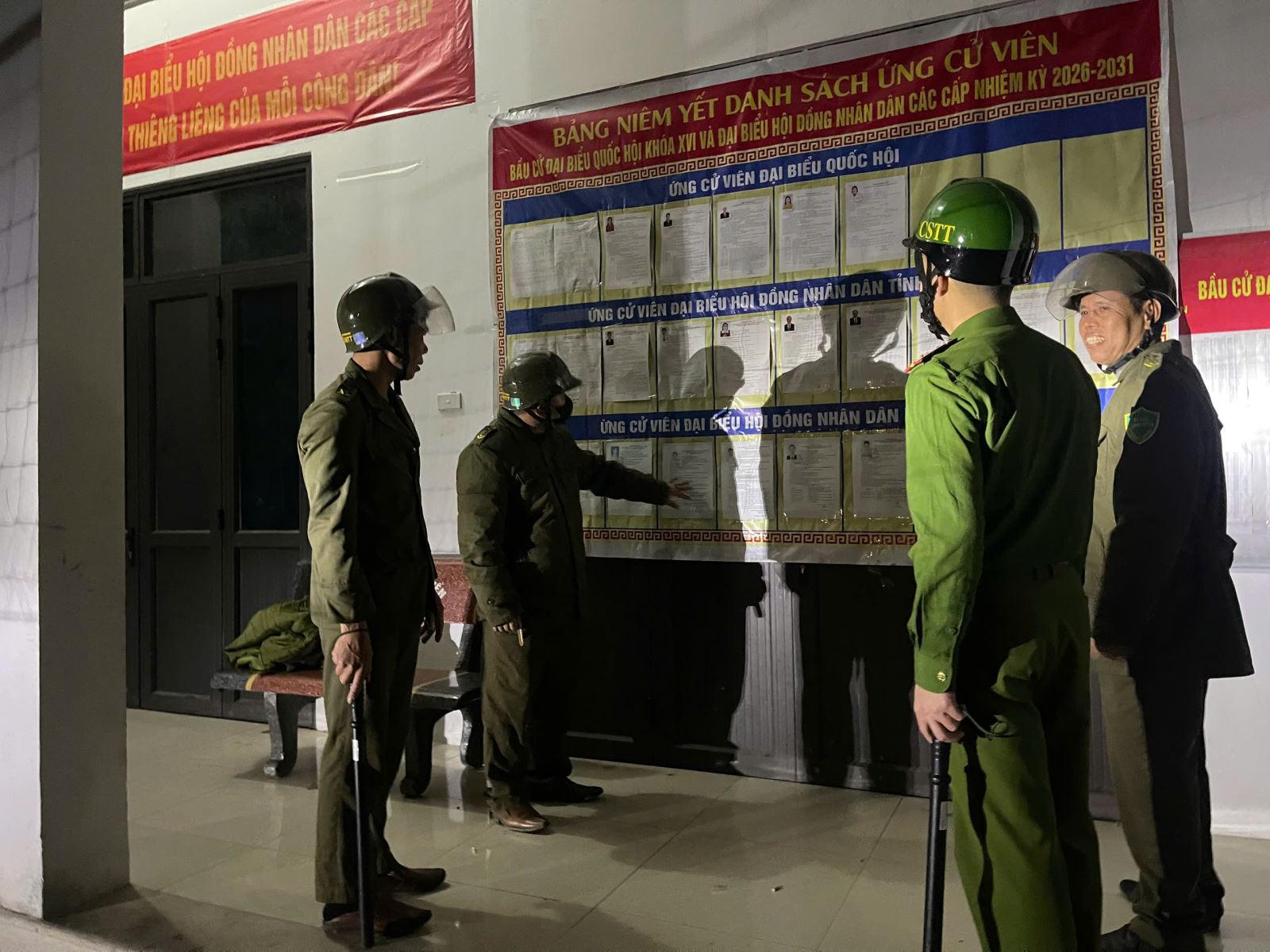 Ở cấp cơ sở, Công an các xã, phường phối hợp với lực lượng tham gia bảo vệ an ninh trật tự ở cơ sở tổ chức tuần tra, kiểm soát địa bàn, rà soát tình hình cư trú, phục vụ việc lập và quản lý danh sách cử tri. Công tác kiểm tra, đối chiếu thông tin được thực hiện chặt chẽ nhằm bảo đảm danh sách cử tri chính xác, đầy đủ theo quy định.