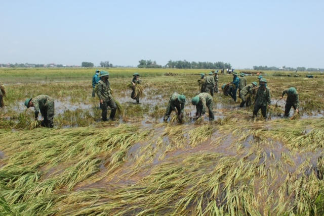 “Bộ tư lệnh Quân khu đã điều động cán bộ, chiến sĩ tham gia khắc phục cùng với nhân dân gặt lúa ở những vùng ngập úng. Với tinh thần khẩn trương, trách nhiệm, tích cực để bảo đảm giảm thiểu thấp nhất thiệt hại cho nhân dân” thiếu tướng Hà Thọ Bình, Phó Tư lệnh Quân khu 4 cho biết.