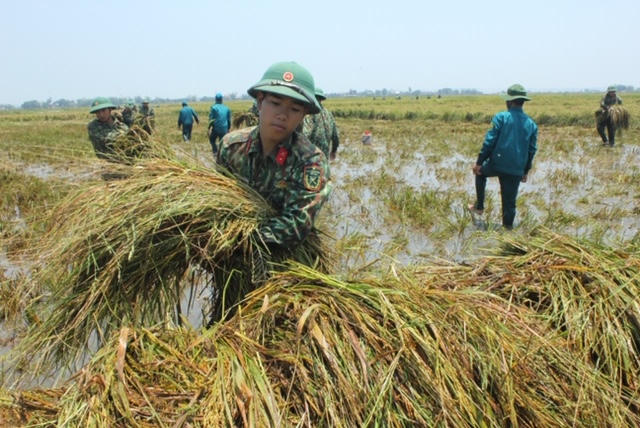 Thượng tá Ngô Nam Cường, Chỉ huy trưởng Bộ chỉ huy quân sự tỉnh Thừa Thiên Huế cho biết, Bộ chỉ huy quân sự tỉnh đang triển khai các lực lượng trên các hướng, về với nhân dân, để giúp nhân gặt lúa, thu hoạch số diện tích bị ngập nước.