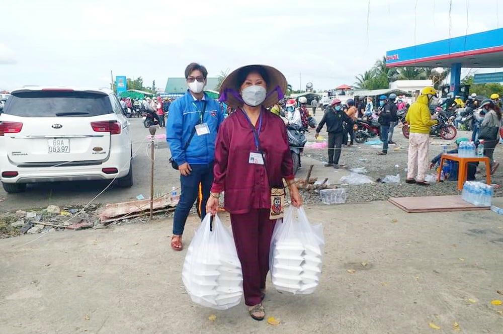 Phó Trưởng Ban Từ thiện Xã hội Phật Giáo tỉnh Nguyễn Thị Ánh Tuyết, chia sẻ: “Trong ngày 01/10, bà con Cà Mau từ TP Hồ Chí Minh và các khu vực lân cận về quê khá đông, lên đến hàng nghìn người. Họ đã trải qua một đoạn đường khá dài, nhiều người còn mang theo con nhỏ mới về được đến quê. Vì vậy, tôi đã nhanh chóng vận động đem lên các chốt hỗ trợ hơn 1.000 ổ bánh mì, chả lụa, nước suối, nhất là sữa cho các bé nhỏ đi cùng gia đình.