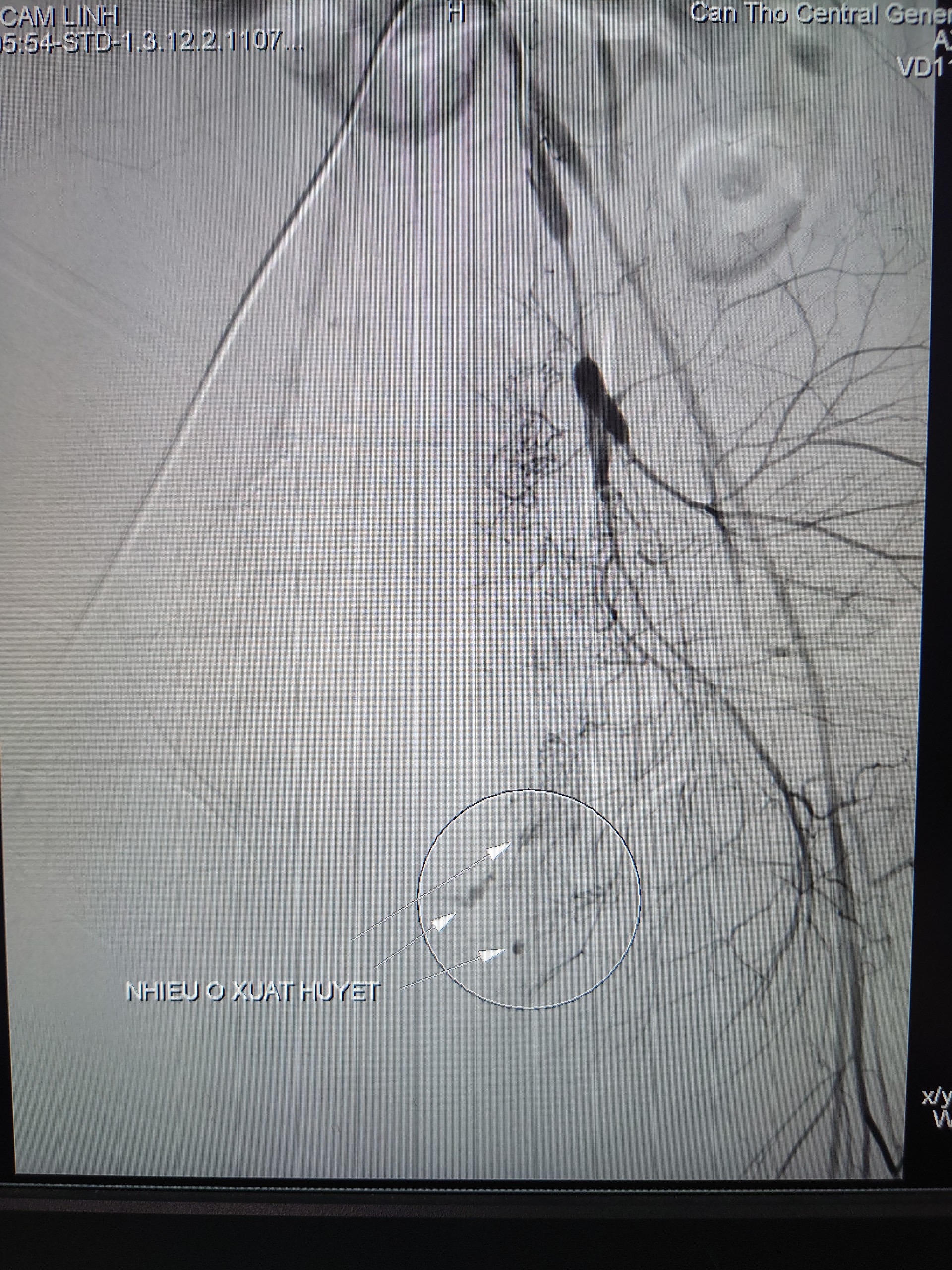 Các bác sĩ tiến hành can thiệp nội mạch cấp cứu kiểm soát tình trạng chảy máu, ổn định huyết động để nhanh chóng kiểm soát tổn thương khác. Sau can thiệp nút mạch thành công tình trạng huyết động bệnh nhân cải thiện tốt mạch rõ, huyết áp ổn định.
