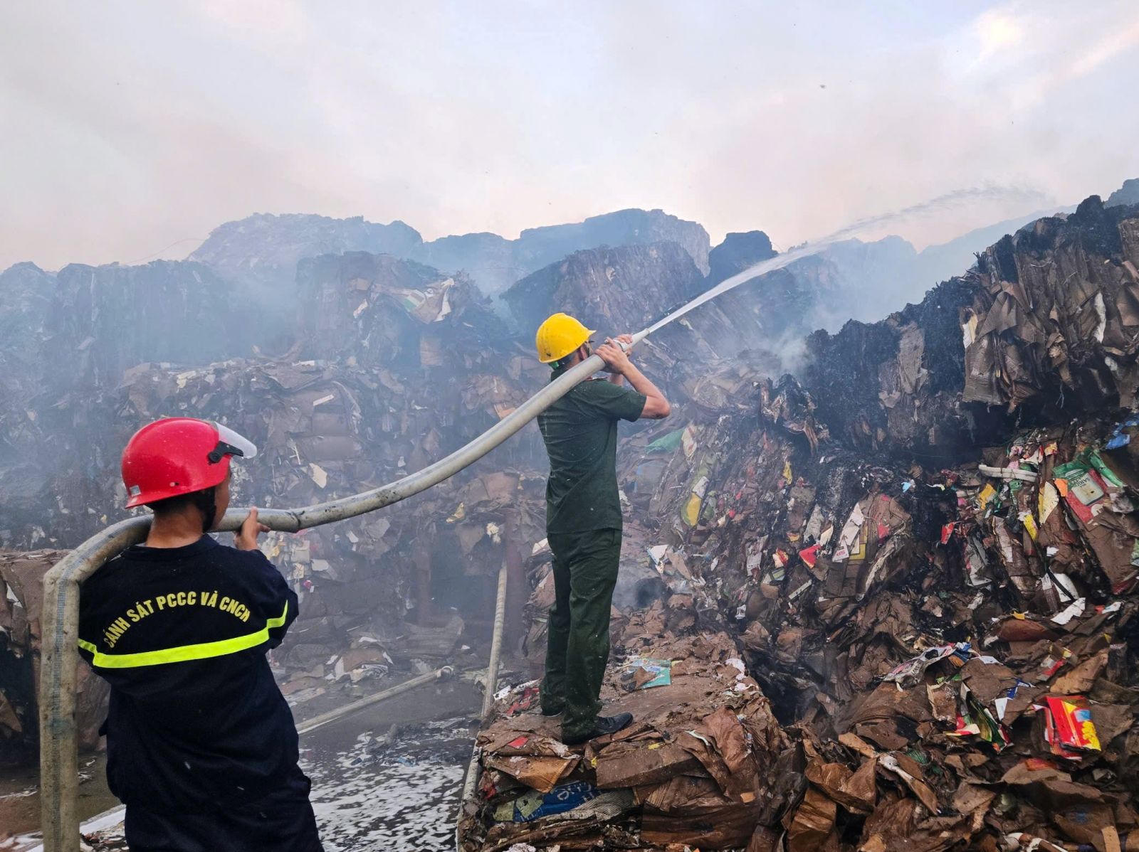 Do thời tiết nắng nóng, khu vực xảy ra cháy toàn là nơi chứa giấy phế liệu nên đến khoảng 22h30 cùng ngày, đám cháy vẫn bùng phát dữ dội, nhưng đã được khoanh vùng, khống chế không cho lan rộng.