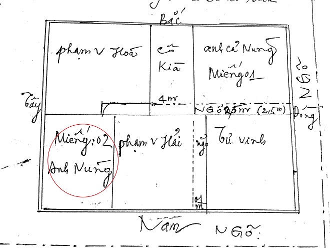 Thửa đất đứng tên bà Nguyễn Thị Phúc (mẹ anh Bính) với diện tích 227m2, tờ bản đồ số 07, số thửa 81 và đã được cấp GCNQSDĐ ngày 28/1/2002. Ngoài việc chia đất cho ông Nùng, cụ Vuốt cũng viết chúc thư thừa kế đất đai cho các người con khác như bà Phạm Thị Kìa, ông Phạm Đức Hòa...